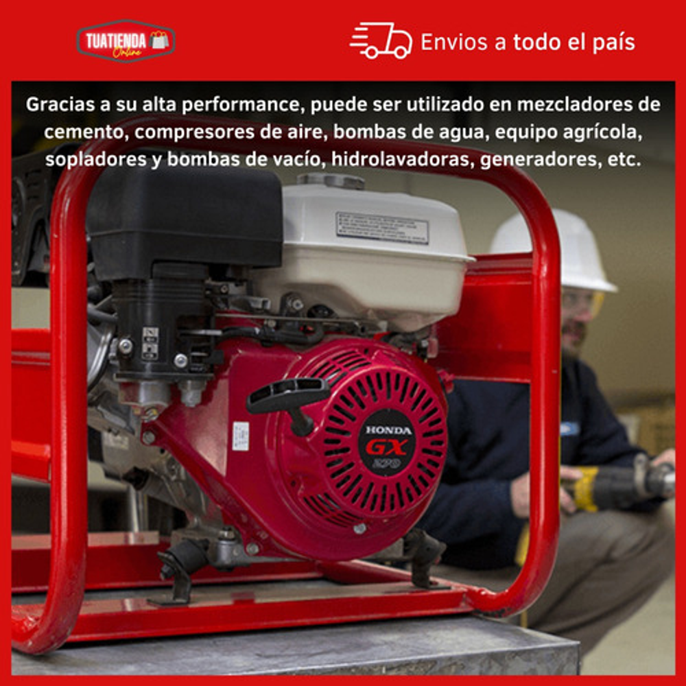 Gracias a su alta performance, este motor puede ser utilizado en mezcladores de cemento, compresores de aire, bombas de agua, equipo agrícola, sopladores y bombas de vacío, hidrolavadoras, generadores, etc.