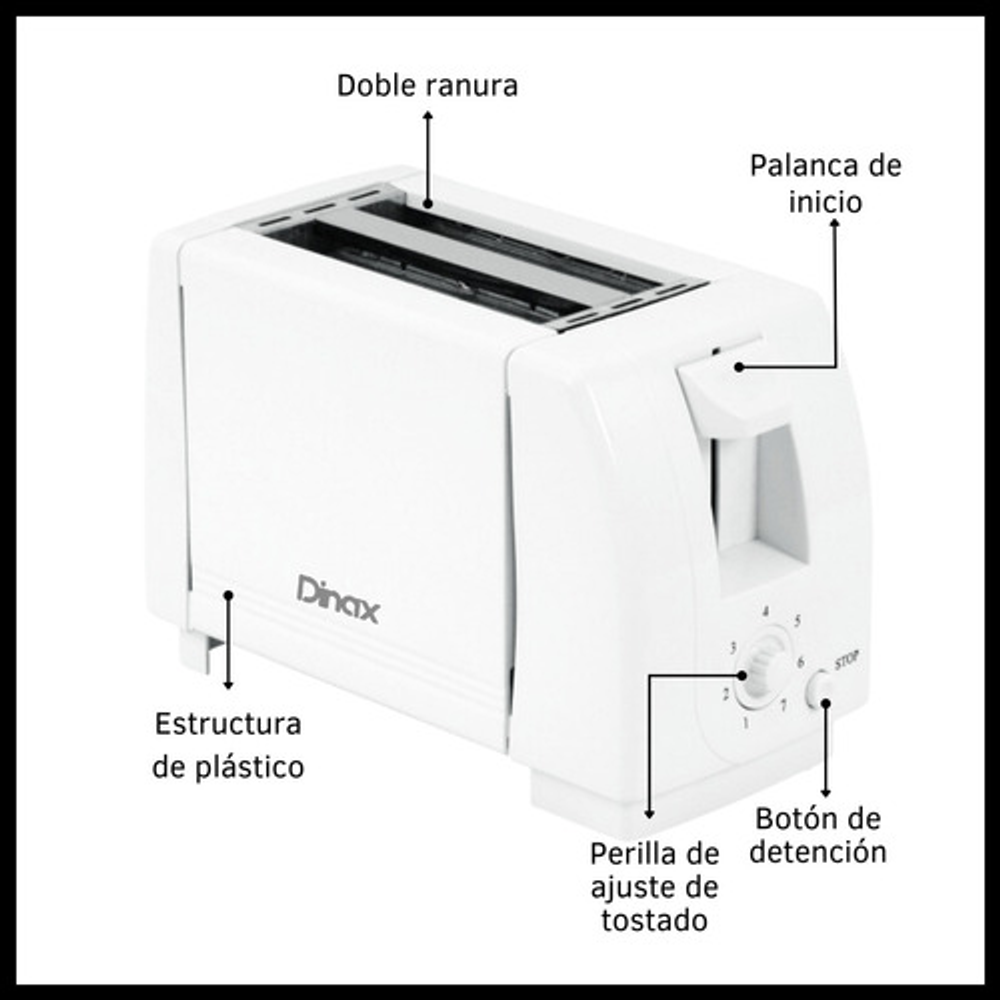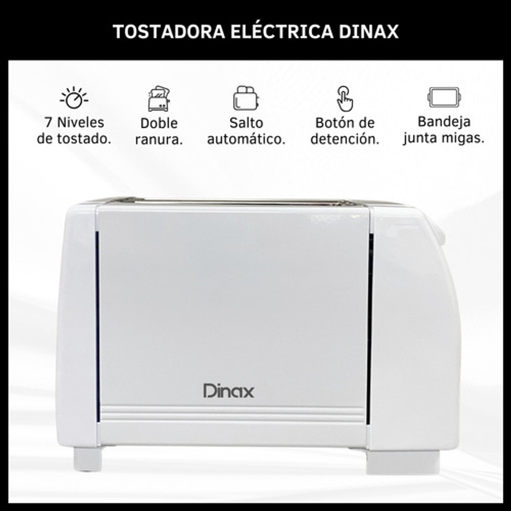 Despierta cada mañana con el aroma de pan recién tostado gracias a la Tostadora Eléctrica Dinax. Este electrodoméstico esencial en tu cocina cuenta con una potencia de 800 W, permitiéndote disfrutar de tostadas perfectamente doradas en menos tiempo. Con su doble ranura, puedes tostar dos rebanadas simultáneamente, ideal para esos desayunos compartidos. Además, su bandeja para migas hace la limpieza más fácil y rápida. La Tostadora Dinax ofrece 7 niveles de tostado, asegurando que cada miembro de la familia encuentre su punto ideal de dorado. El modelo TOS-TM800SEC01 no solo es práctico, sino que también es un elegante complemento para tu cocina, con la calidad y confianza que la marca Dinax siempre garantiza.