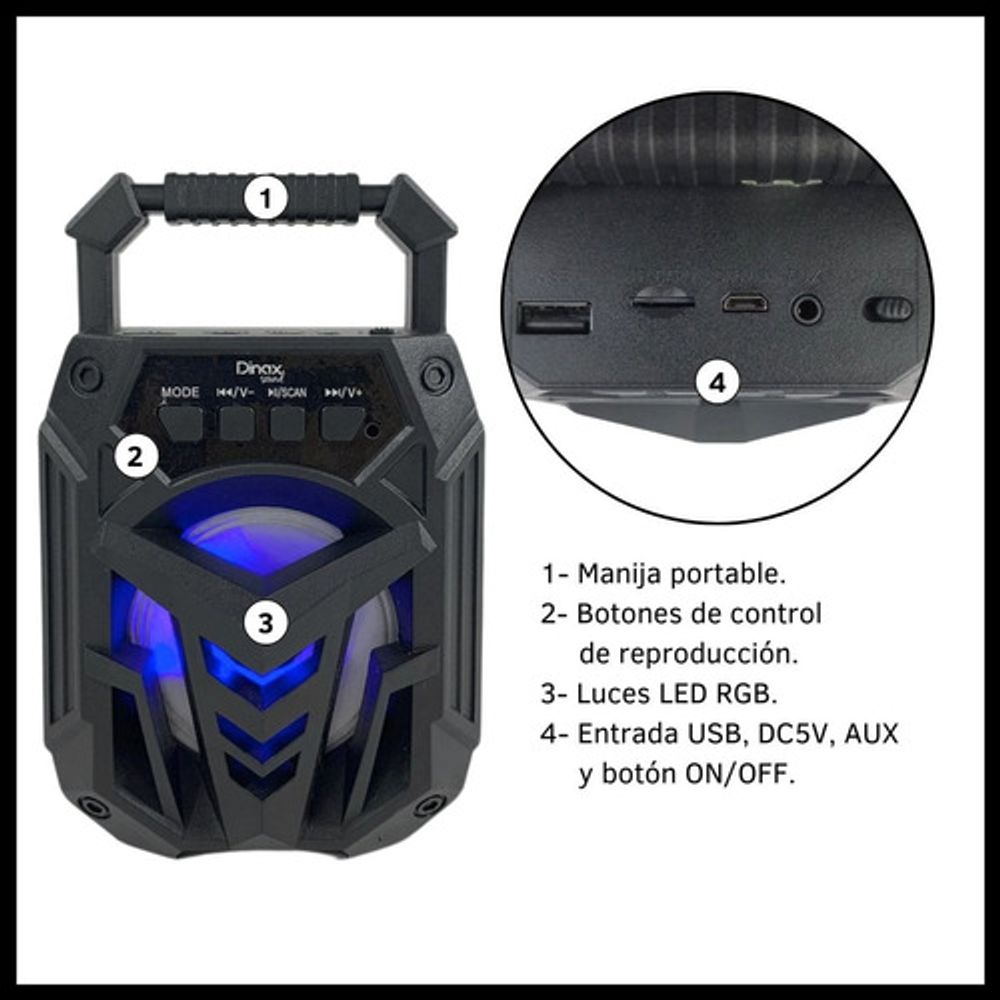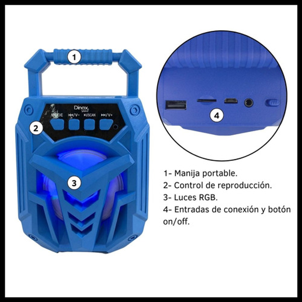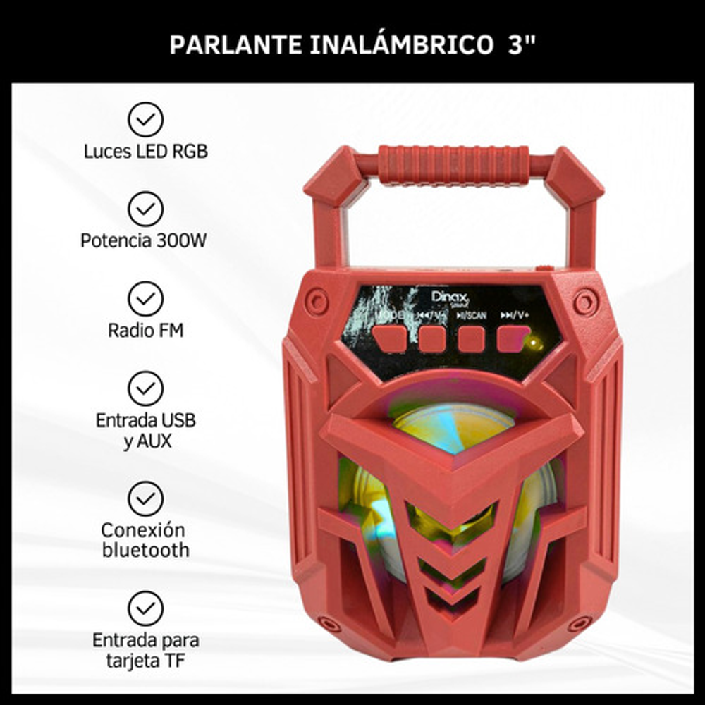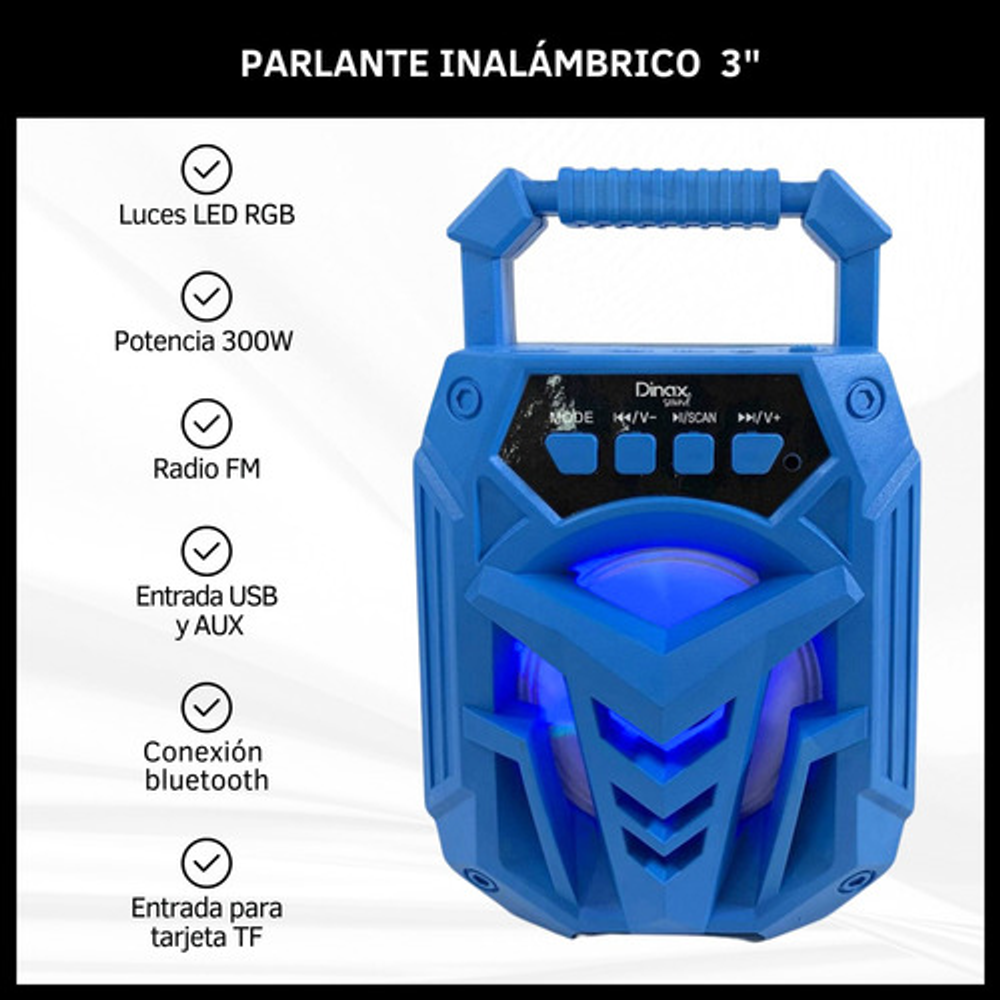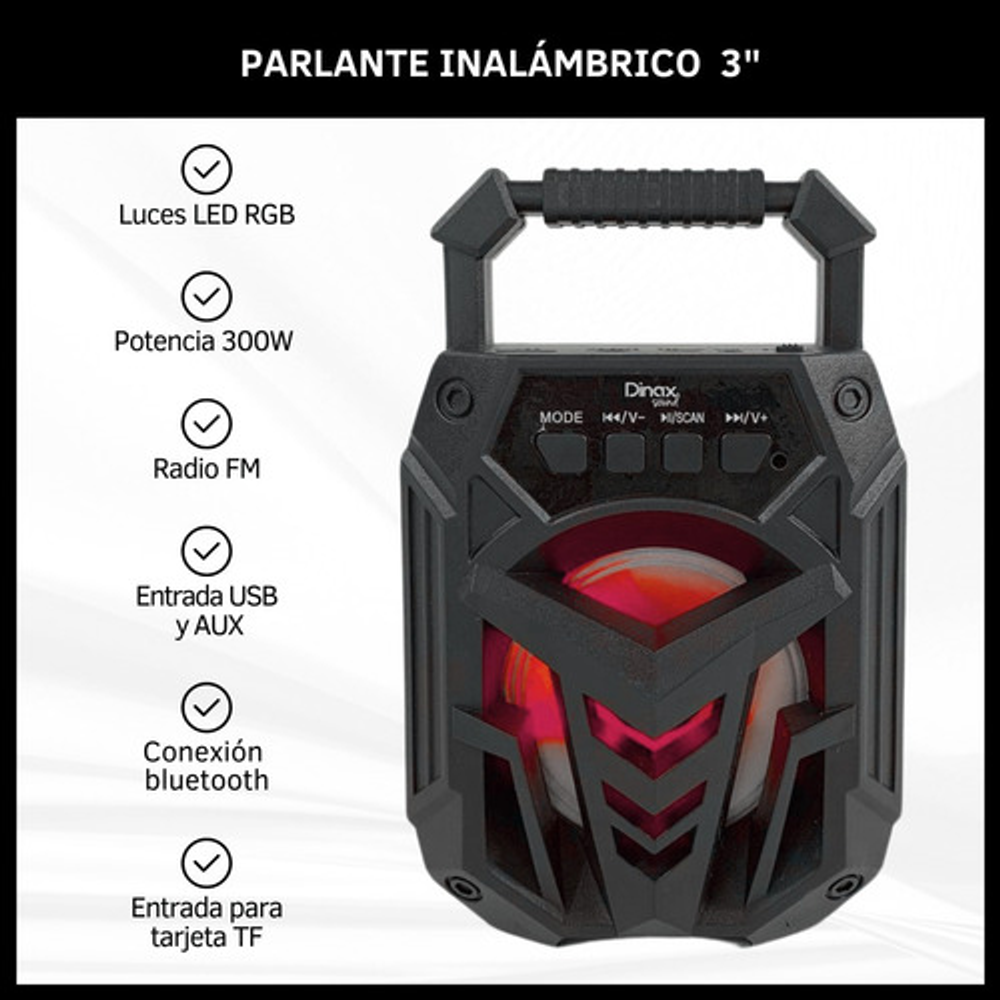 PARLANTE INALÁMBRICO 3" CON LUCES LED RGB 300W: