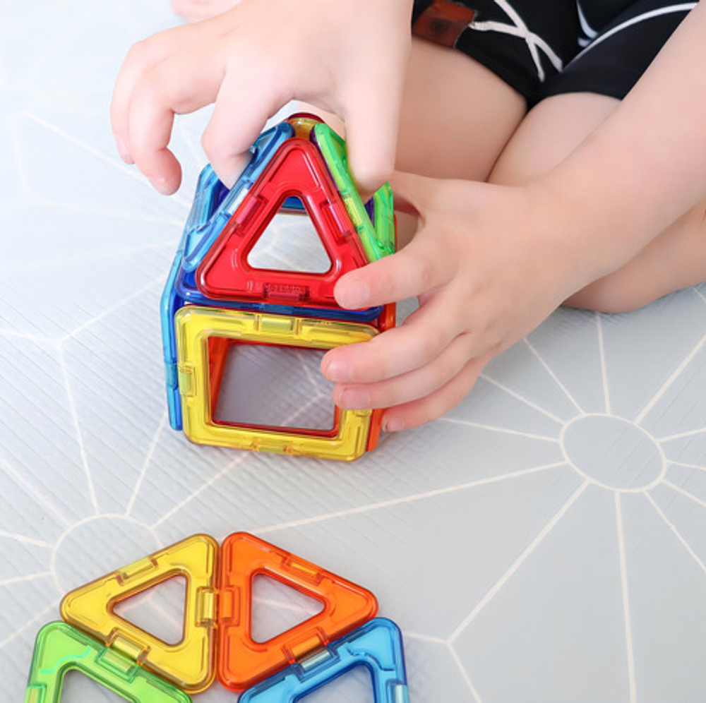 16 piezas geométricas imantadas.