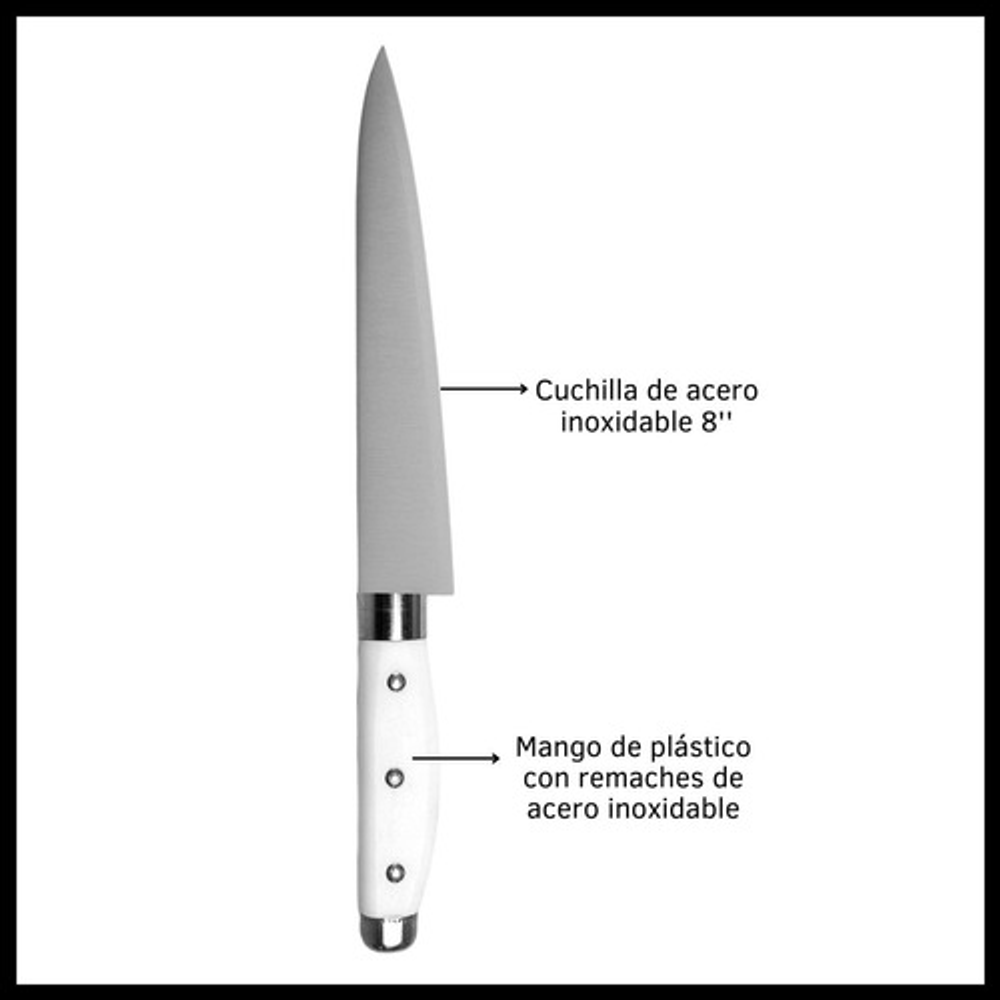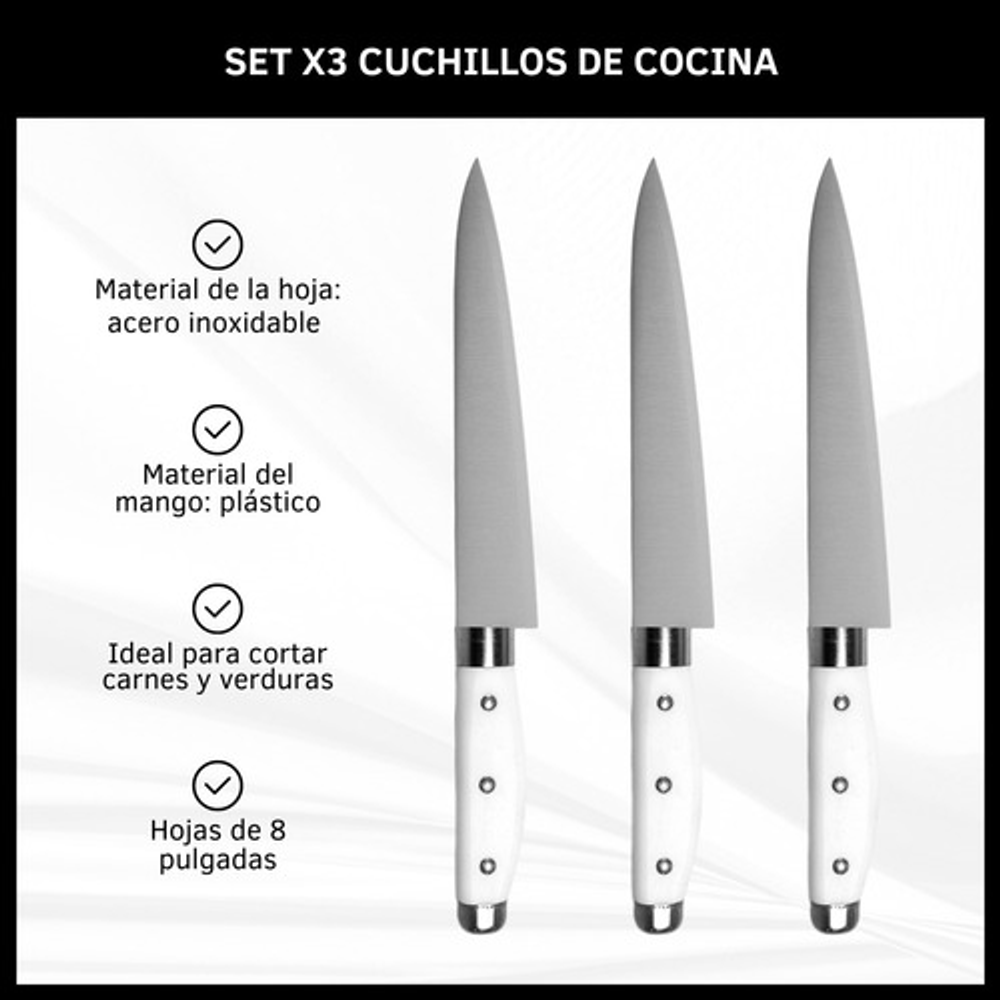 SET DE CUCHILLOS X3 CON MANGO DE PLÁSTICO Y HOJA DE ACERO INOXIDABLE DE 8"