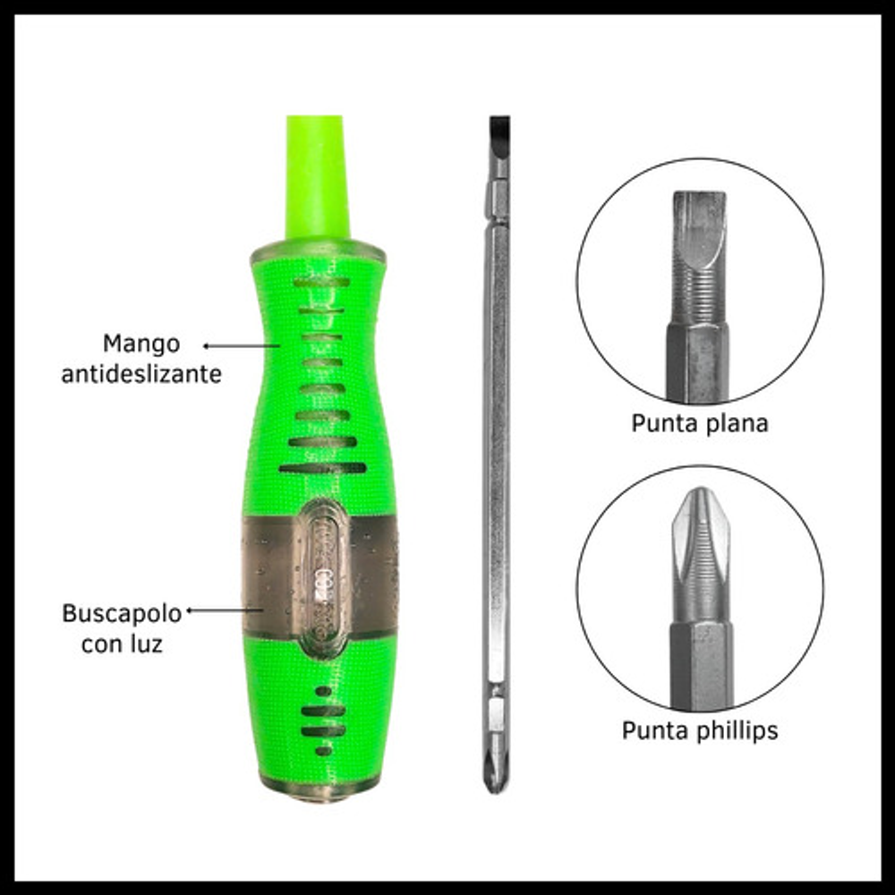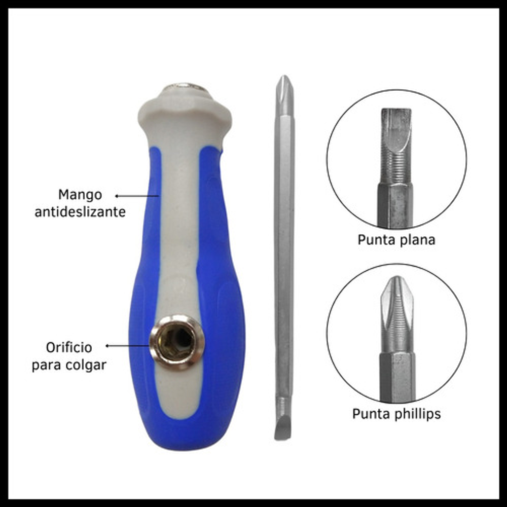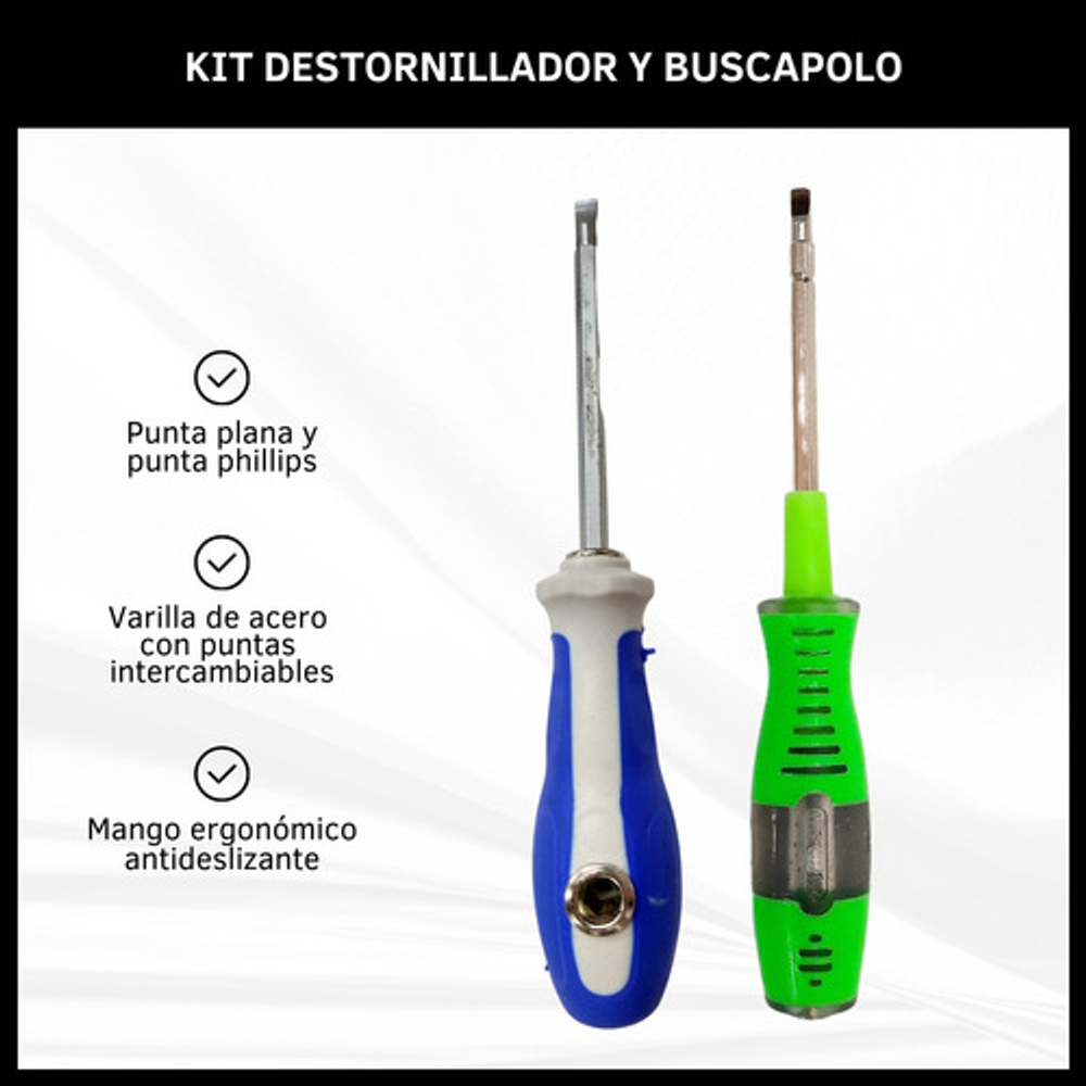 KIT DESTORNILLADORES: 1 DESTORNILLADOR Y 1 BUSCAPOLO DOBLE PUNTA INTERCAMBIABLES