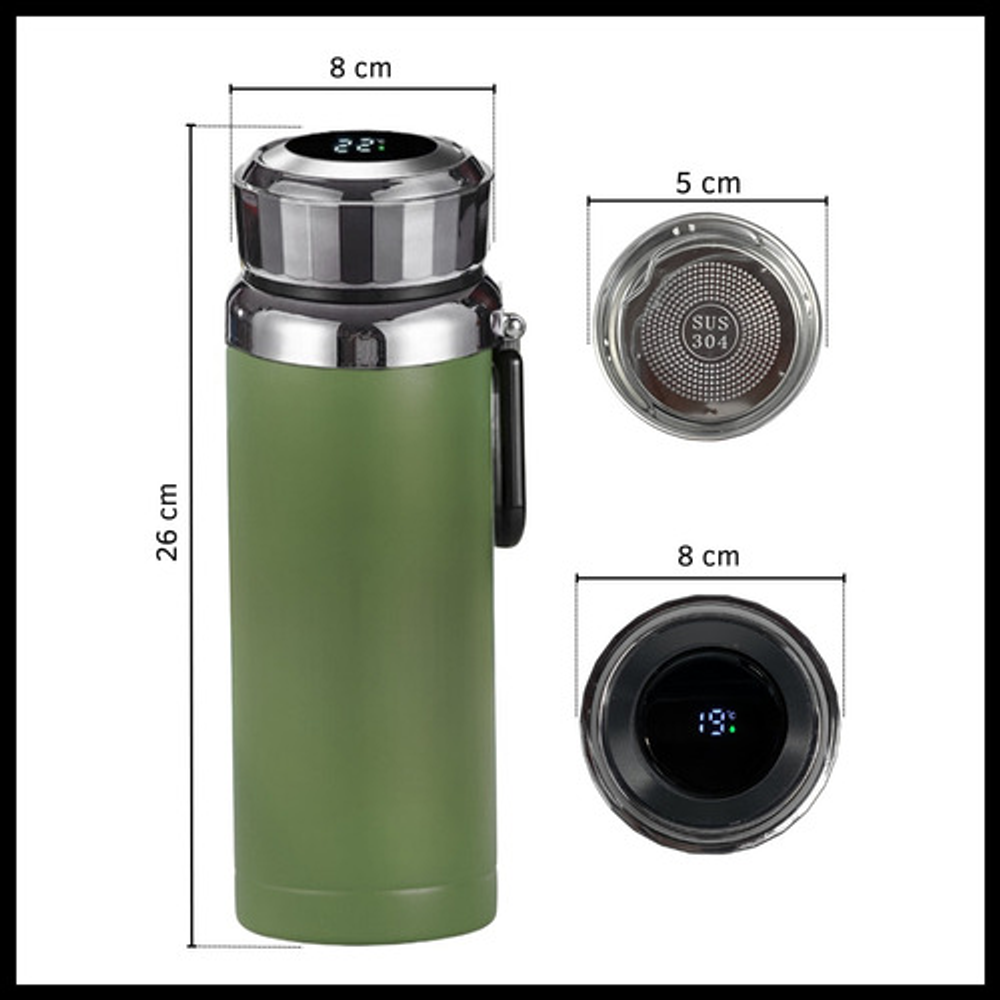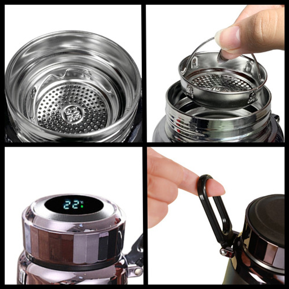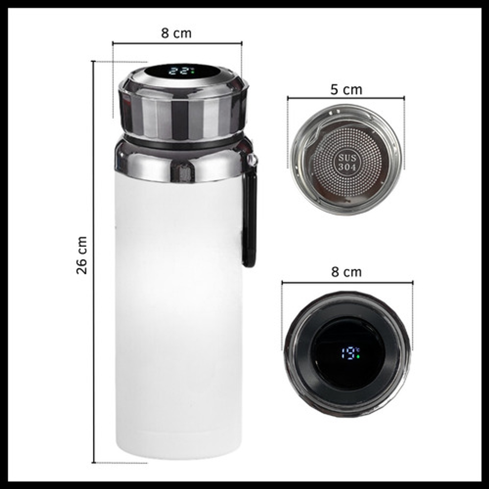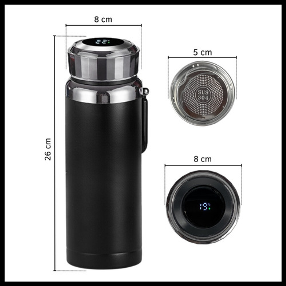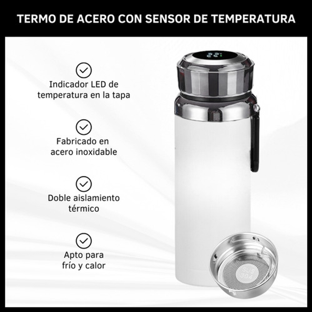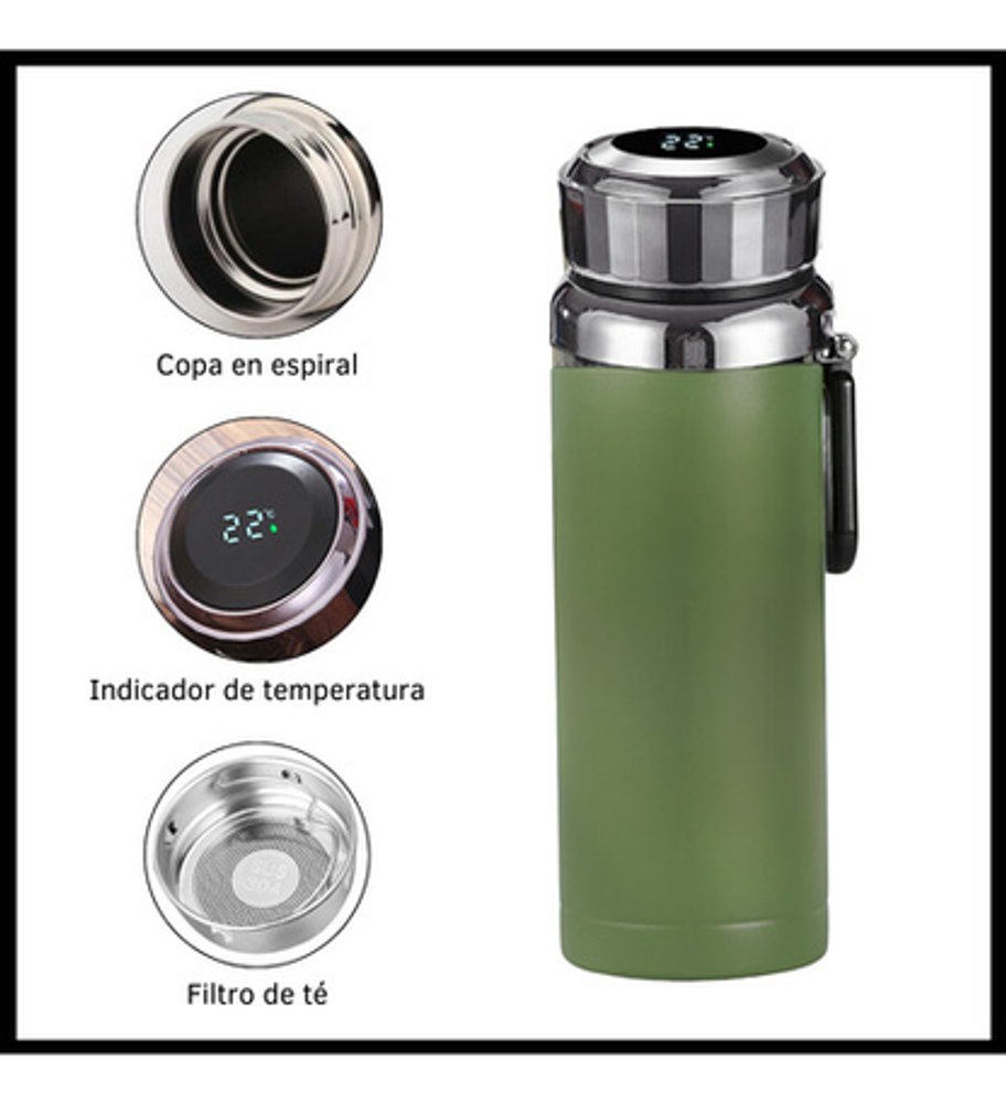 BOTELLA TERMO DE ACERO CON CONTROL DE TEMPERATURA DIGITAL Y FILTRO