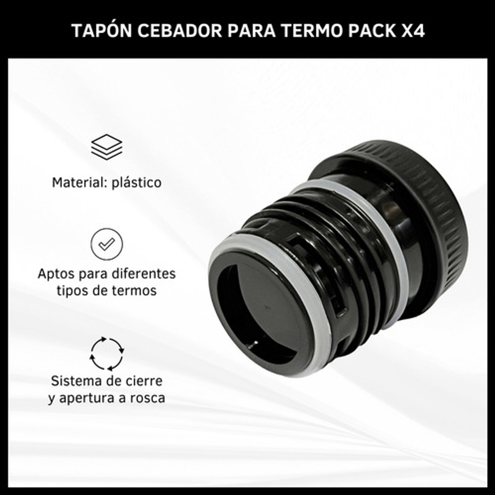 TAPÓN CEBADOR PARA TERMO DE 1 LITRO X4 UNIDADES