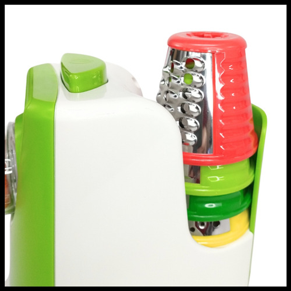 Características: • Cuchillas para molido, rallado grueso-fino y rebanado grueso-fino. • Material del cuerpo: Plástico. • Material de las cuchillas: Acero inoxidable. • Incluye accesorio para empujar alimentos. • 220v - 240v