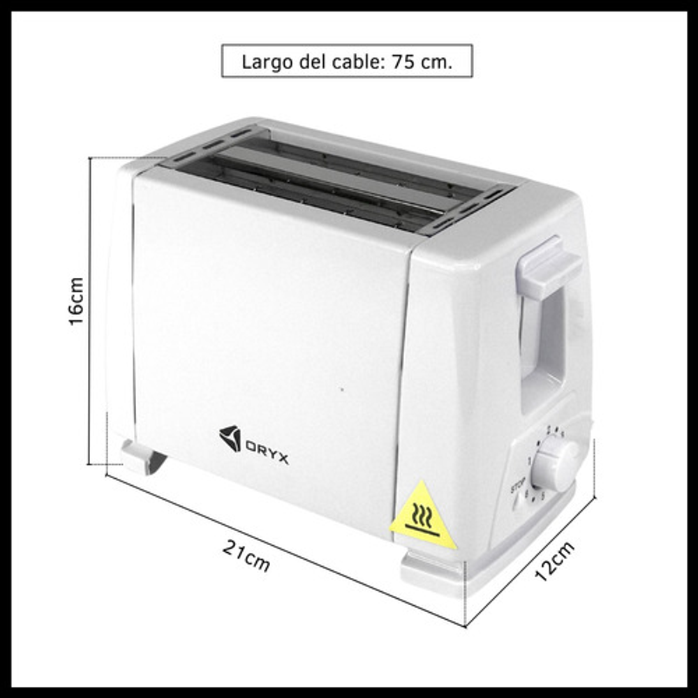 Características: • Doble ranura para pan. • 6 niveles de tostado. • Botón detener. • Potencia: 750W. • Eyección automática. • Largo del cable: 75cm.
