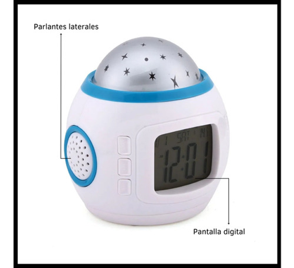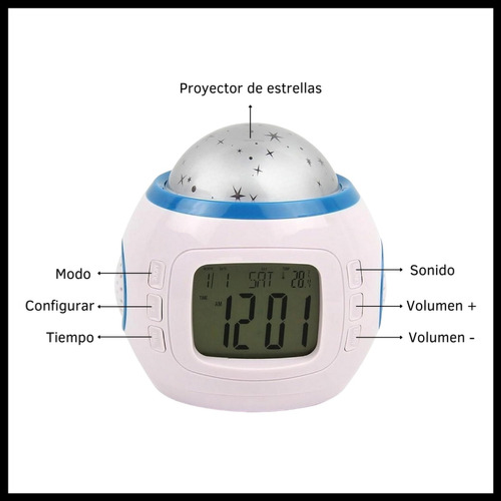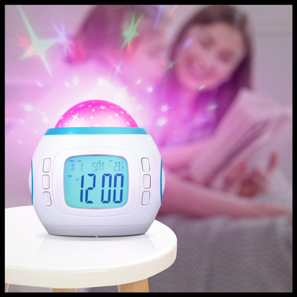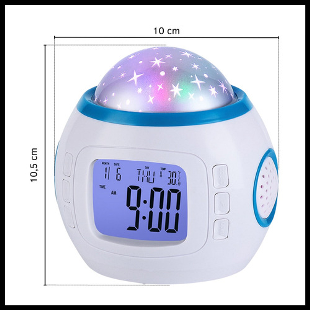 RELOJ DESPERTADOR CON PROYECCIÓN DE ESTRELLAS Y MÚSICA