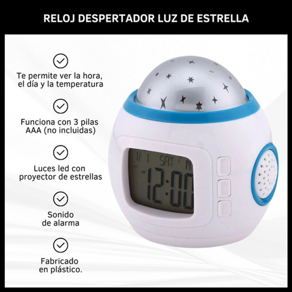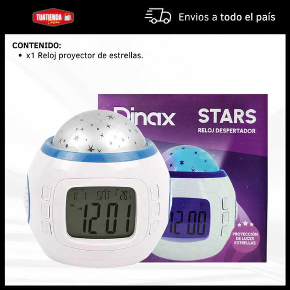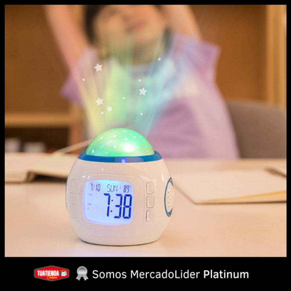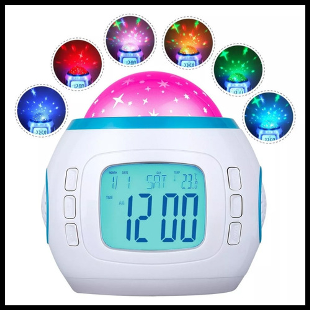RELOJ DESPERTADOR CON PROYECCIÓN DE ESTRELLAS Y MÚSICA