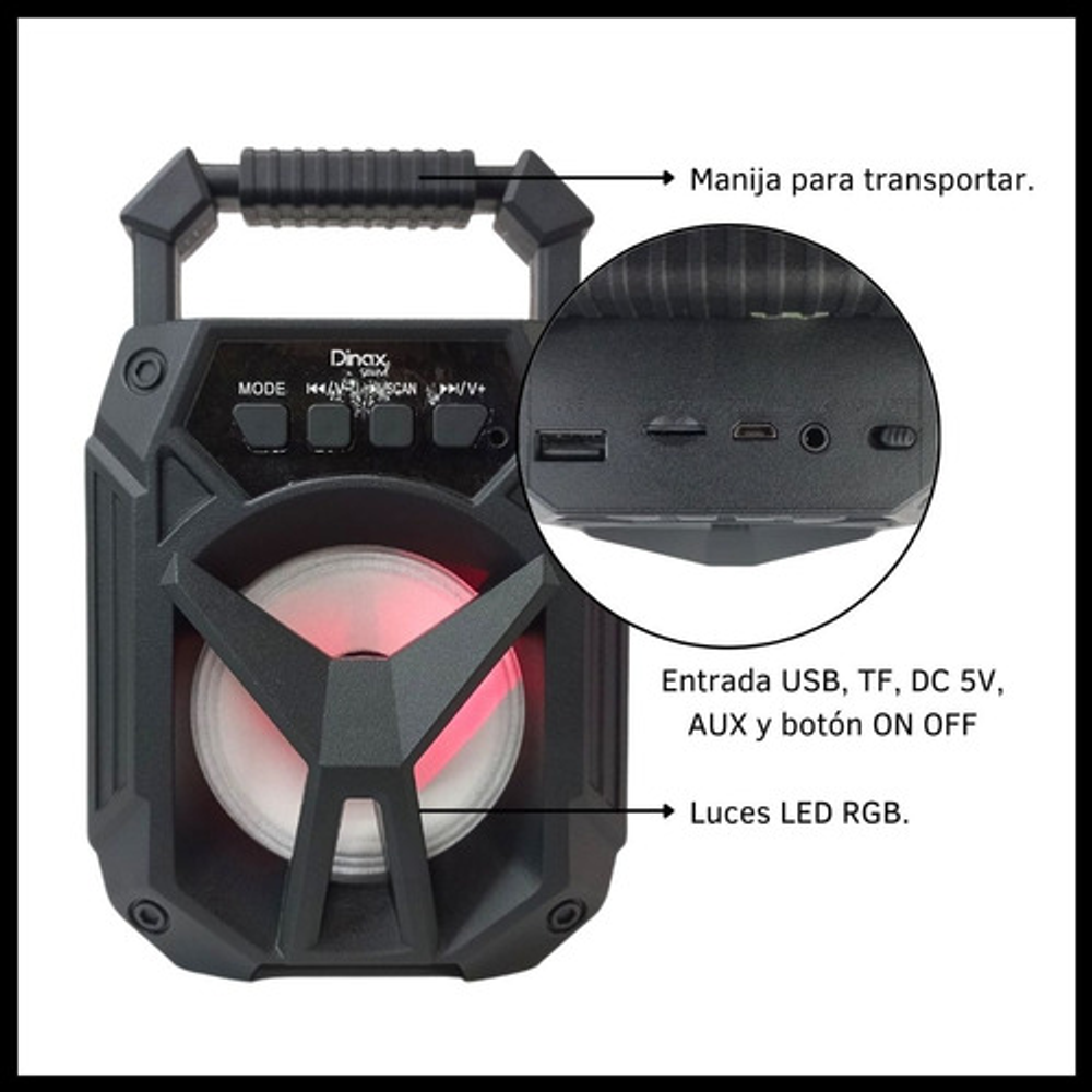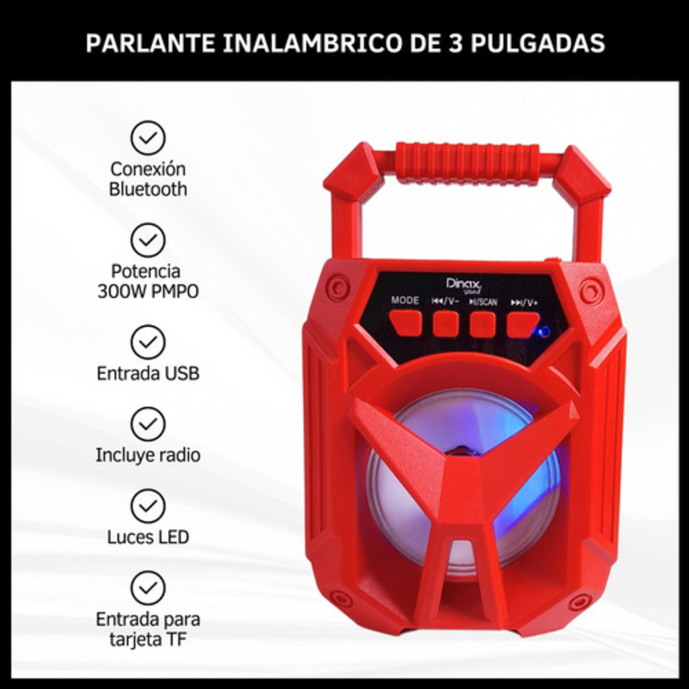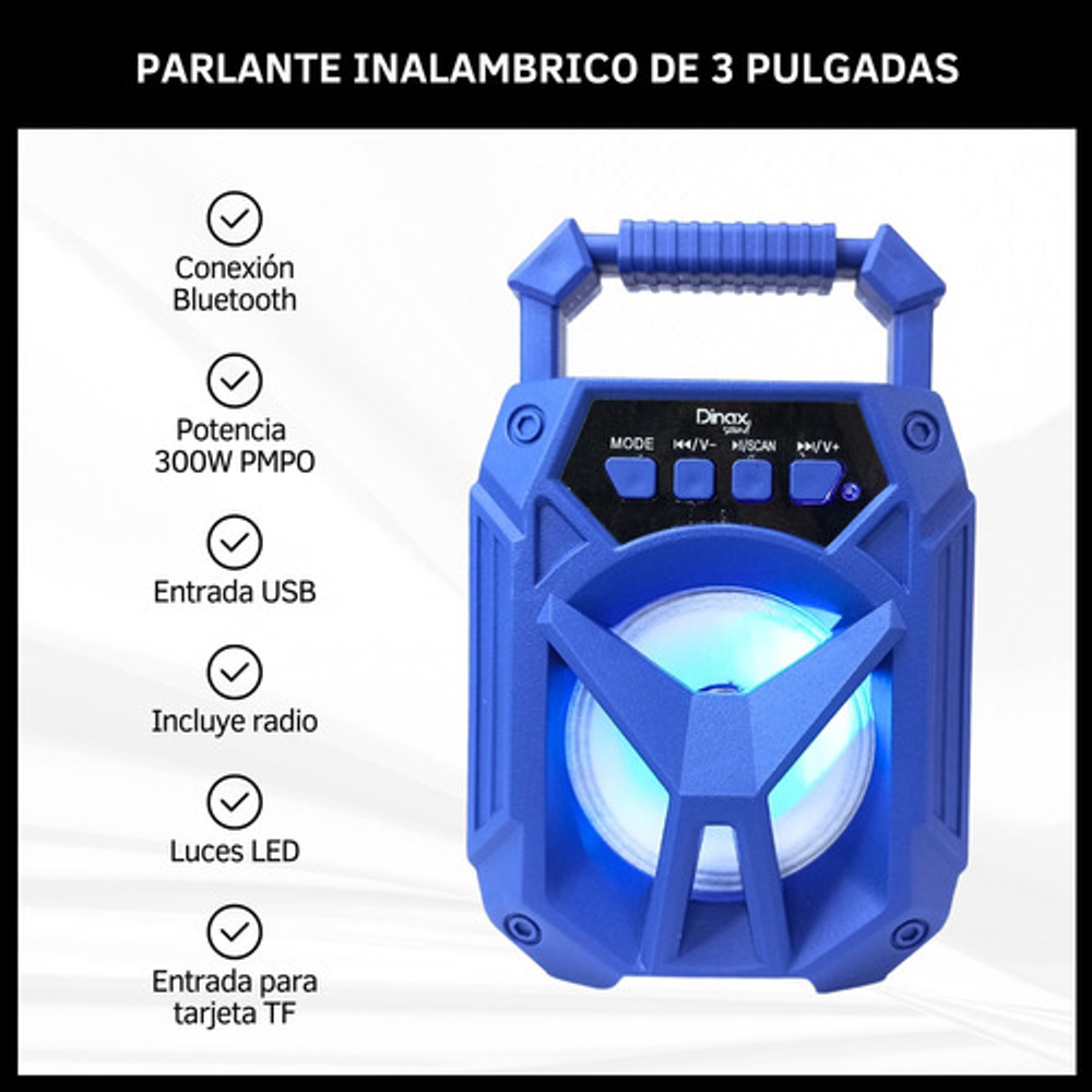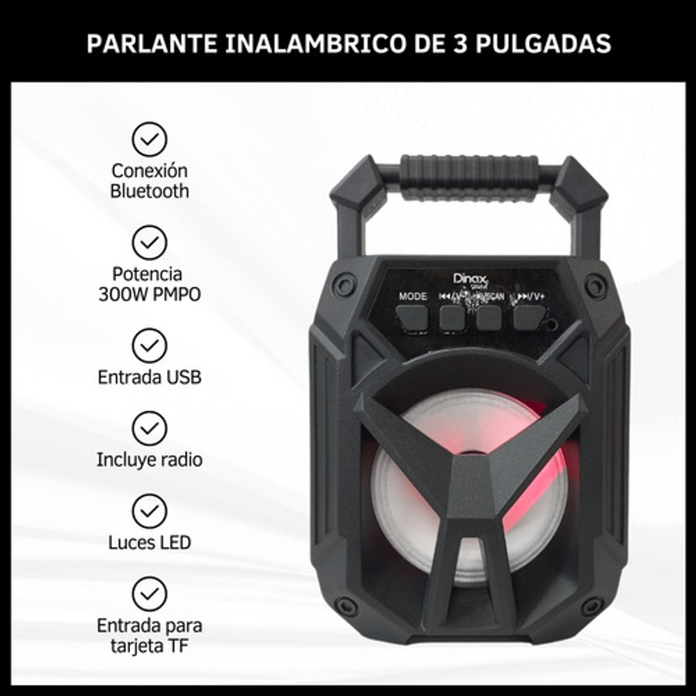 PARLANTE INALÁMBRICO 3" CON LUCES LED RGB 300W: