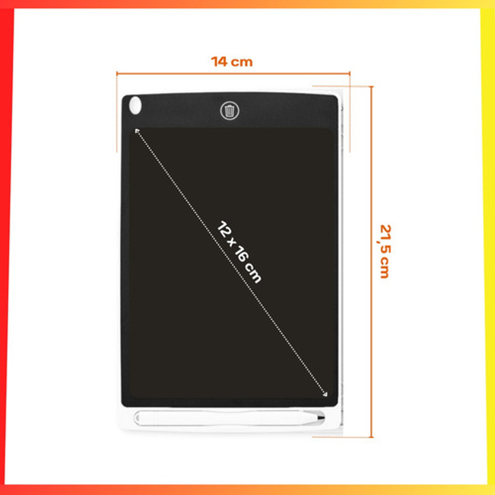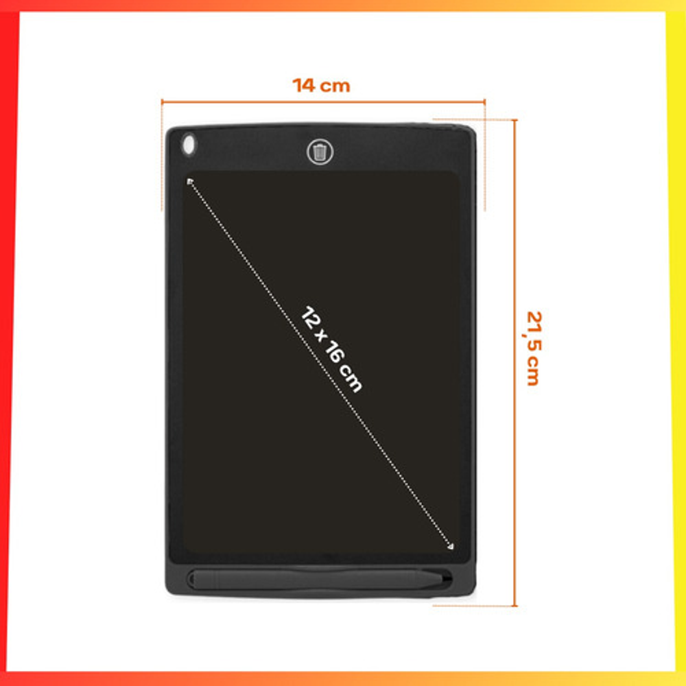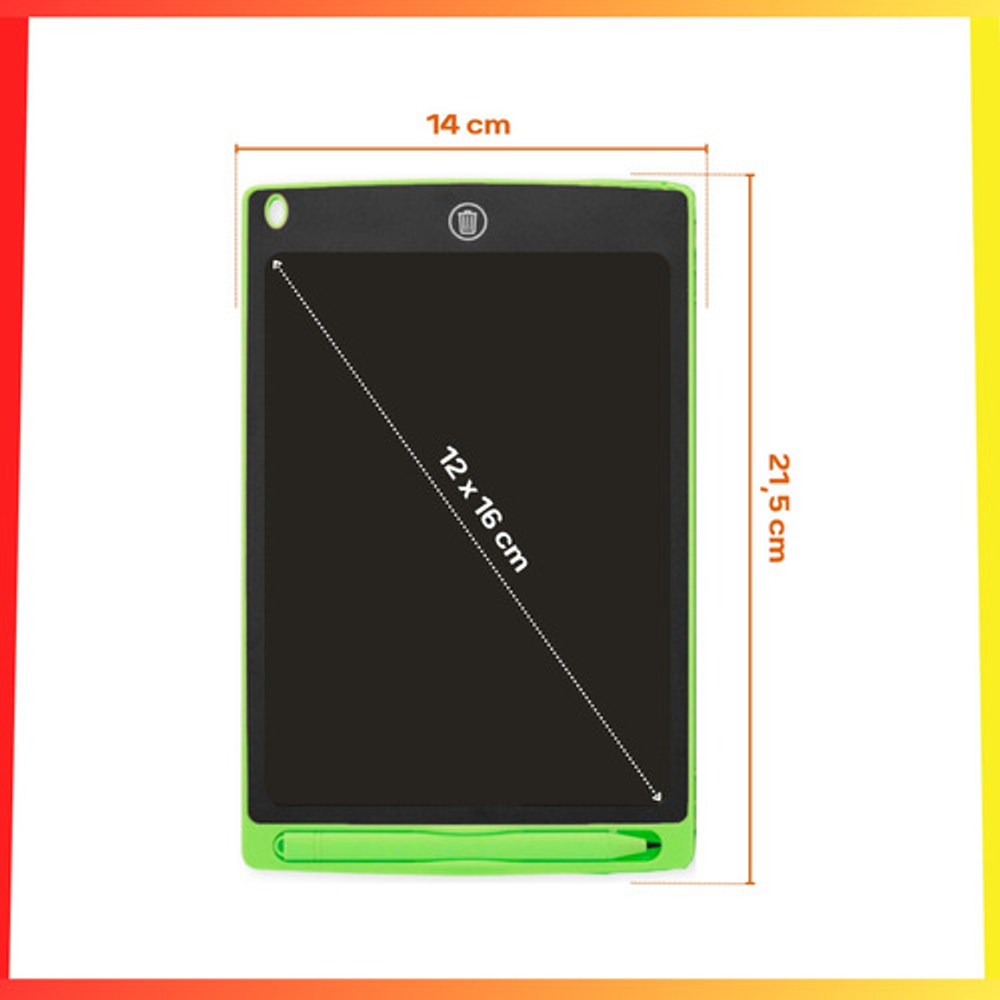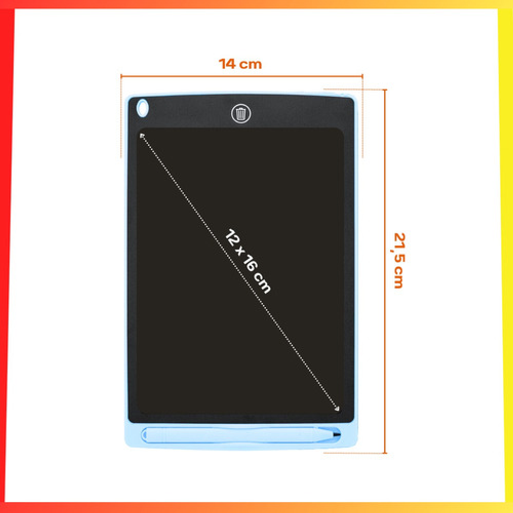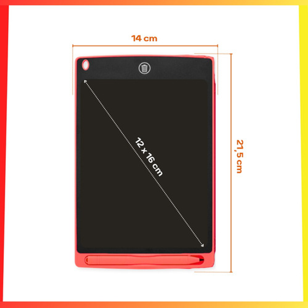 Características: • Fabricada en plástico • Pantalla LCD • Incluye lápiz para dibujar • También se puede dibujar con el dedo • Tamaño de la tableta completa: 12 pulgadas • Tamaño de la pantalla: 16.5 x 23.5 cm • Funciona con 1 pila CR2025 3V (incluida)