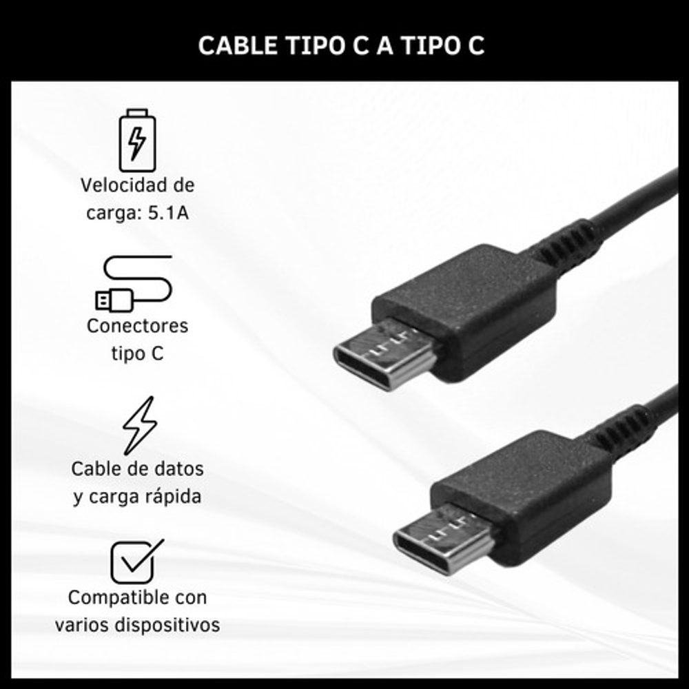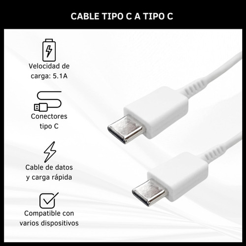 CABLE 5.1A TIPO C A TIPO C CARGA RÁPIDA 1 METRO BLANCO- NEGRO