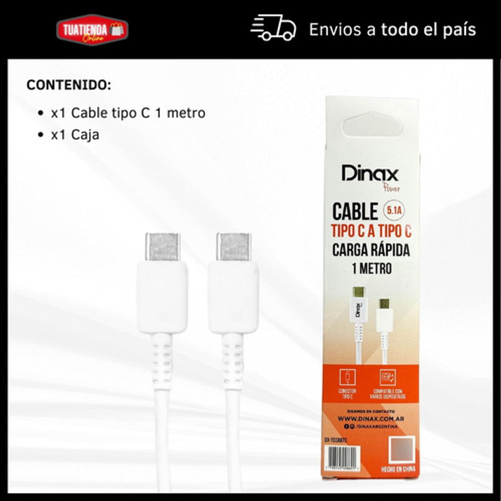 CABLE TIPO C DE CARGA RAPIDA: https://articulo.mercadolibre.com.ar/MLA-1383525928-cable-cargador-y-datos-dinax-tipo-c-carga-rapida-celulares-_JM