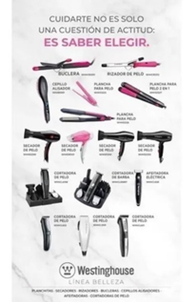 Si hay algo que no puede faltar en tu baño es un secador de pelo Westinghouse WHHD8300. En ondas, rulos, lacio, usalo como más te guste. Este producto se encargará de cuidar la salud de tu cabello y de crear el look perfecto para cada ocasión. Es pequeño, liviano y viene a completar tu set de belleza en el hogar.