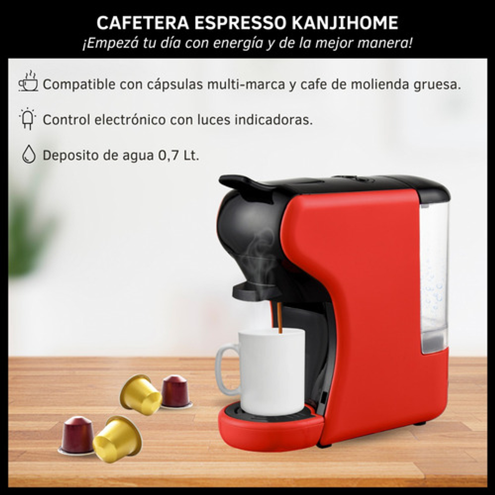 CAFETERA AUTOMATICA 0,7 LITROS KANJI IDEAL PARA CAPSULAS MULTI MARCAS Y CAFE MOLIDO.