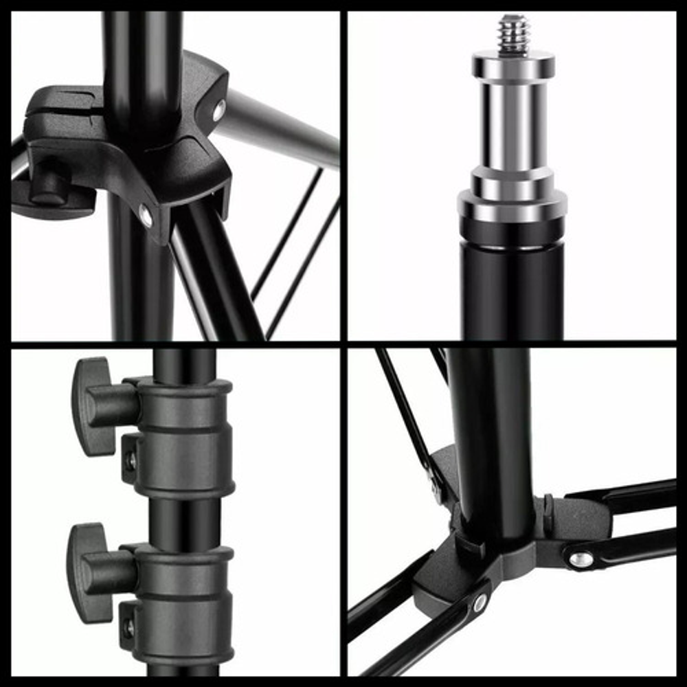 Características: • Libre ajuste de ángulo. • Alimentación USB. • Trípode universal. • Luces SOFT/RGB. • Rotación 360º.