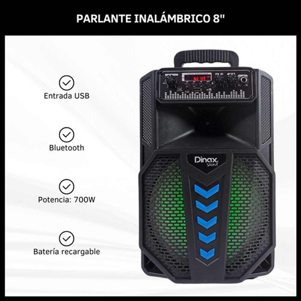 PARLANTE INALÁMBRICO 8" CON LUCES RGB Y MICRÓFONO