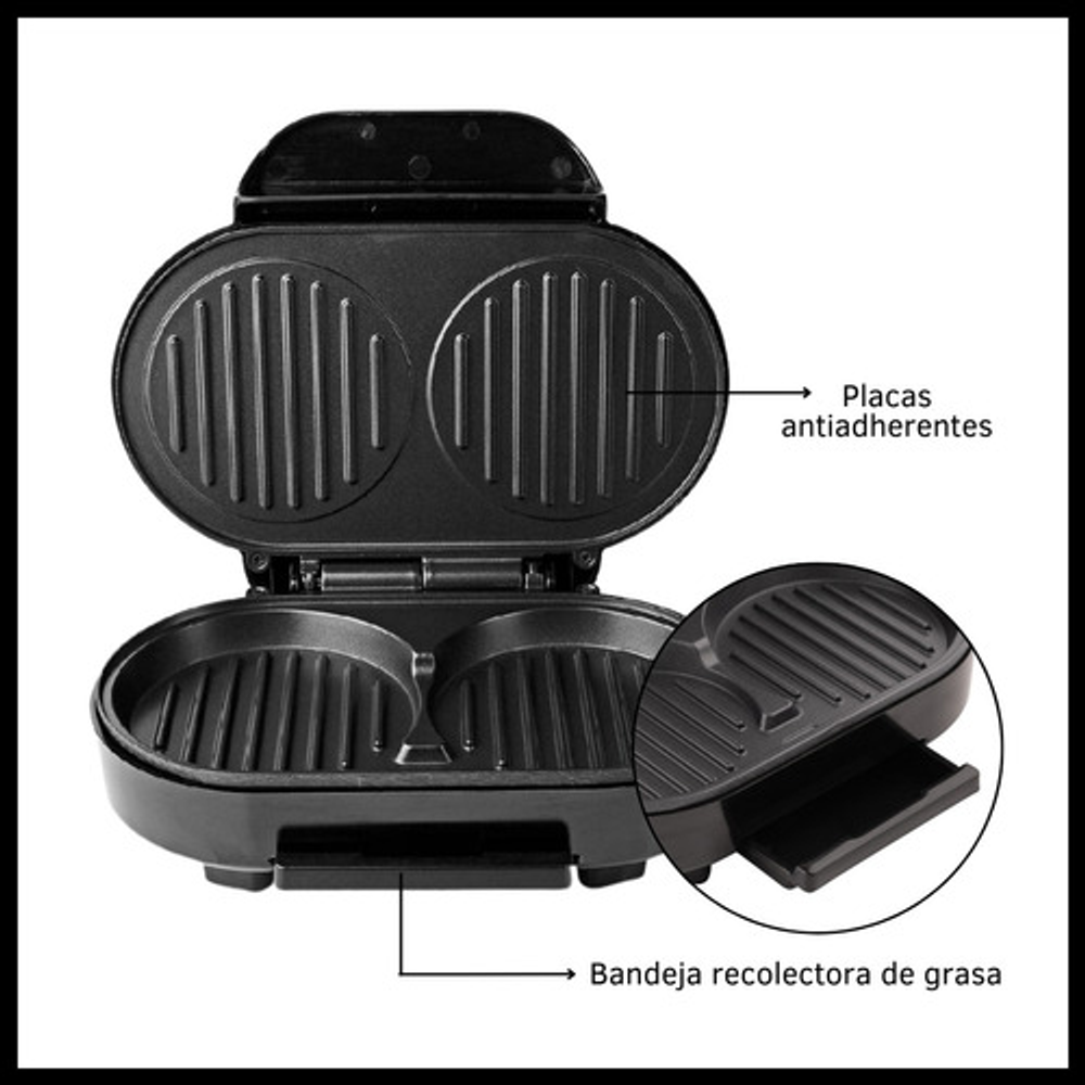 HAMBURGUESERA ELECTRICA PARA 2 HAMBURGUESAS KANJI HOME