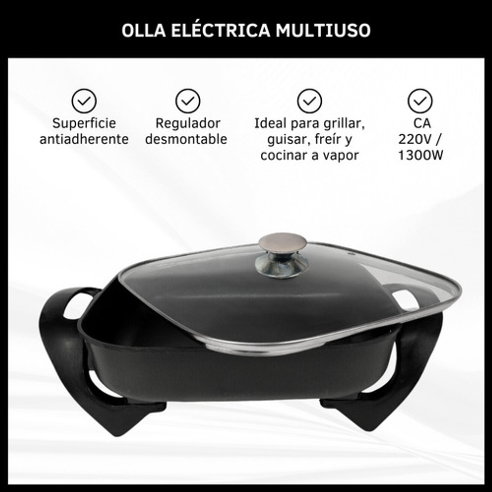 OLLA ELÉCTRICA MULTIUSO CON INTERIOR DE TEFLÓN ANTIADHERENTE.