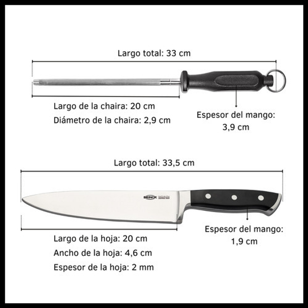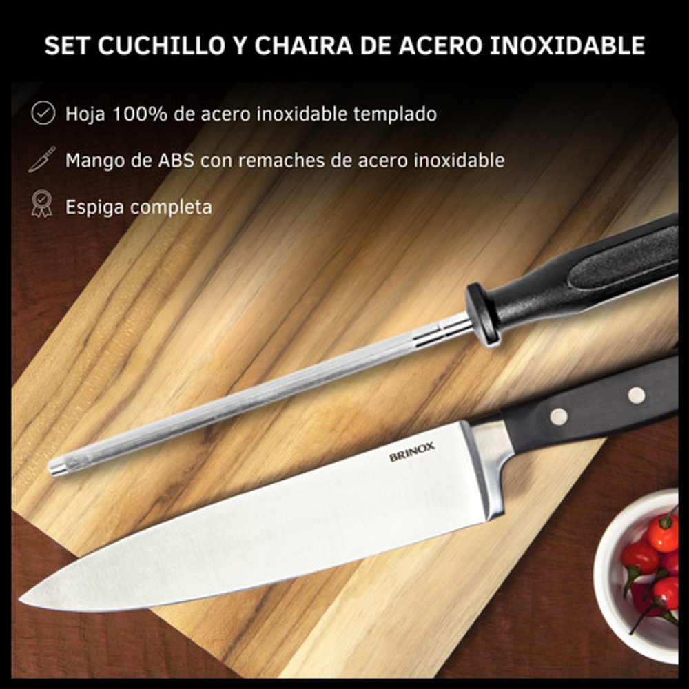 Set de Cuchillo y Chaira Acero Inoxidable Brinox Lyon Infinity