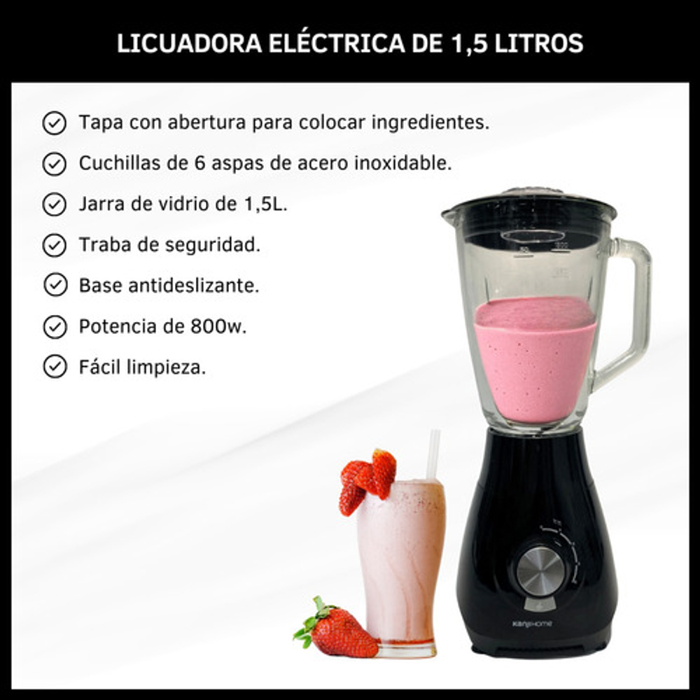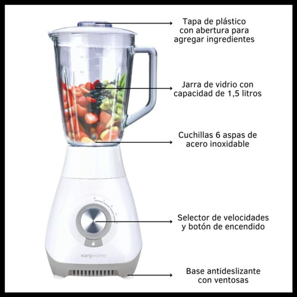 LICUADORA 1.5 LITROS JARRA DE VIDRIO KANJI