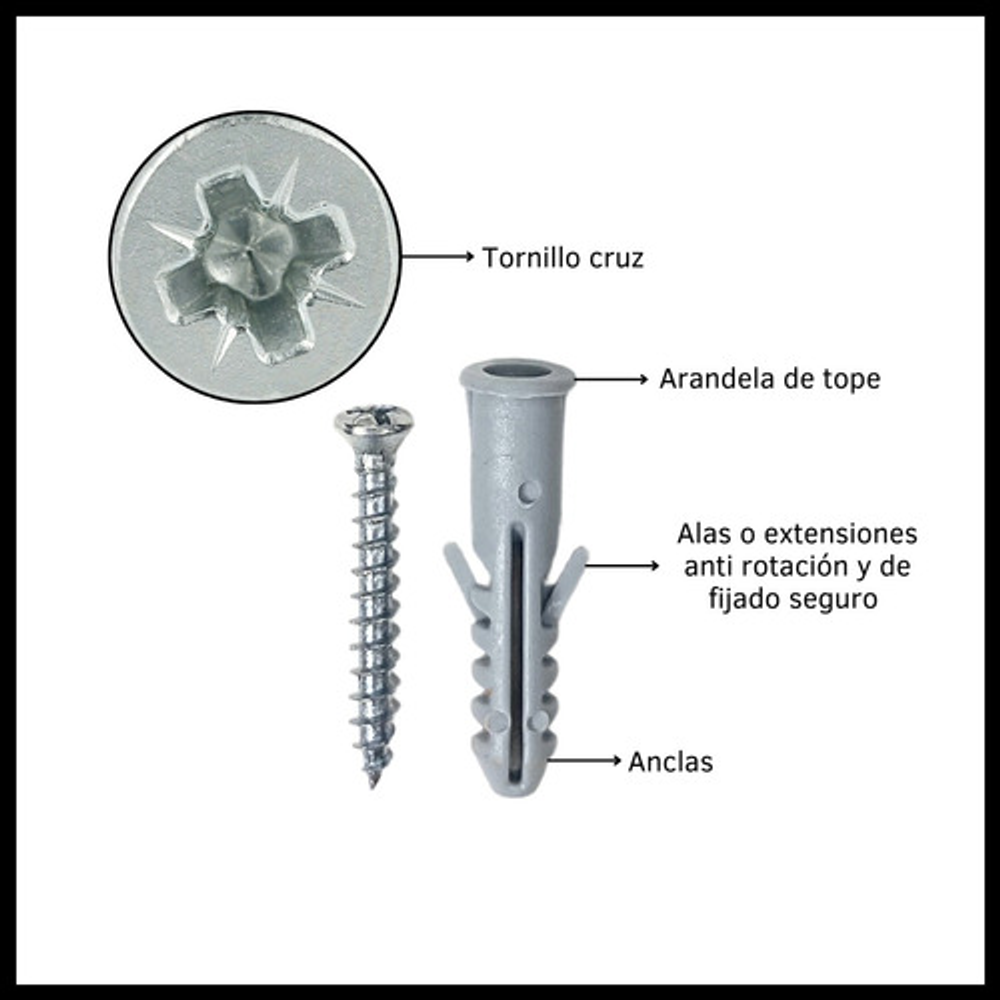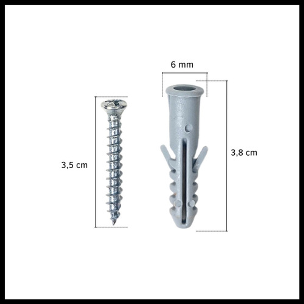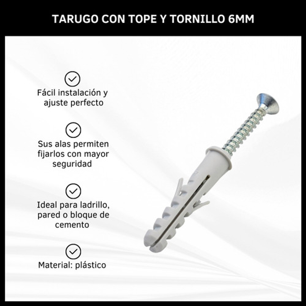 TARUGO CON TOPE Y TORNILLOS 6 MM X100 UNIDADES=