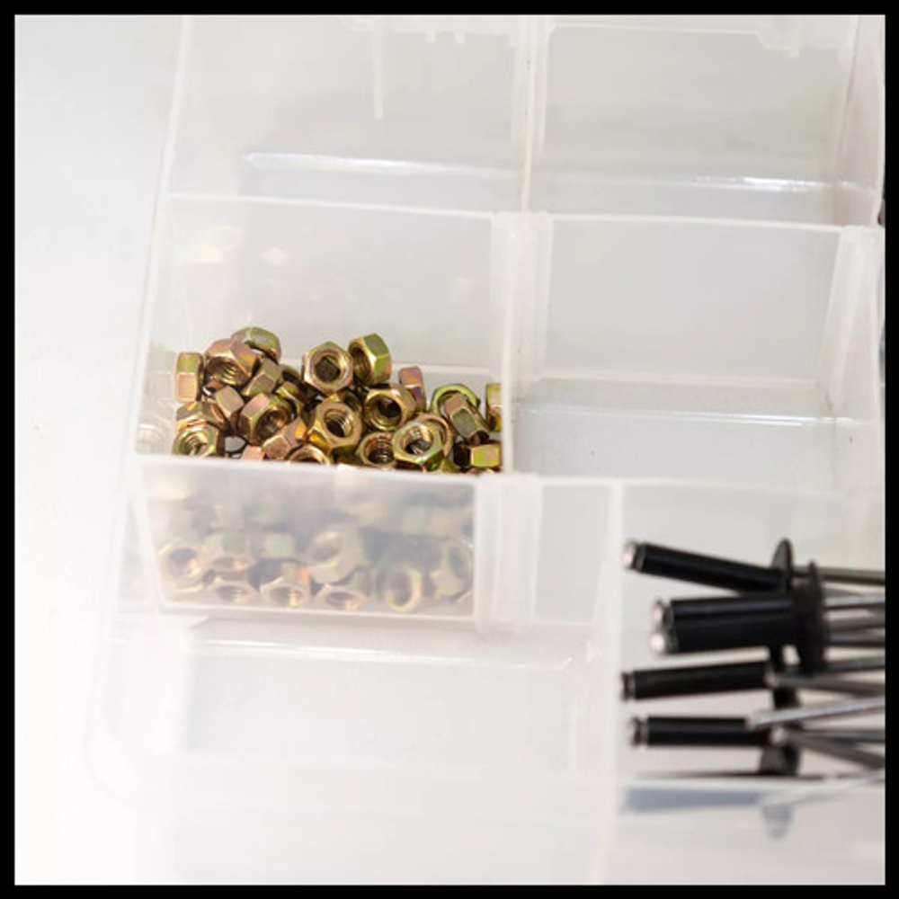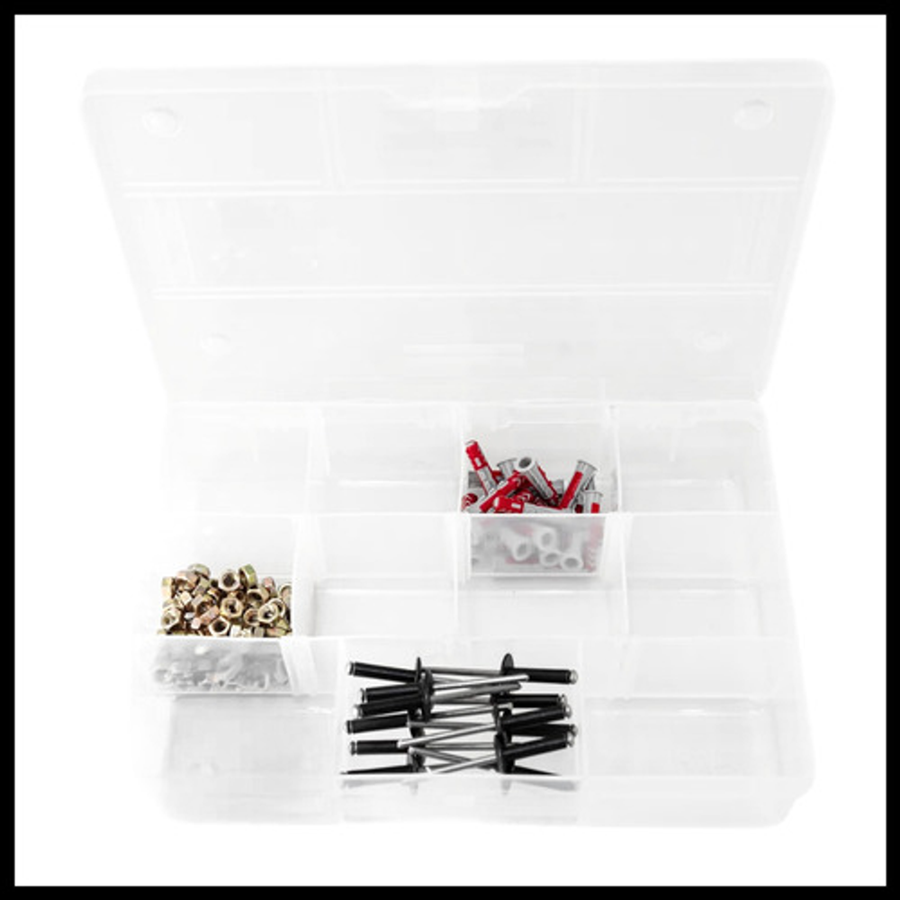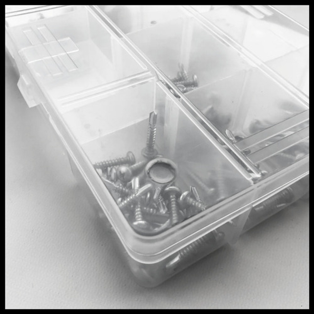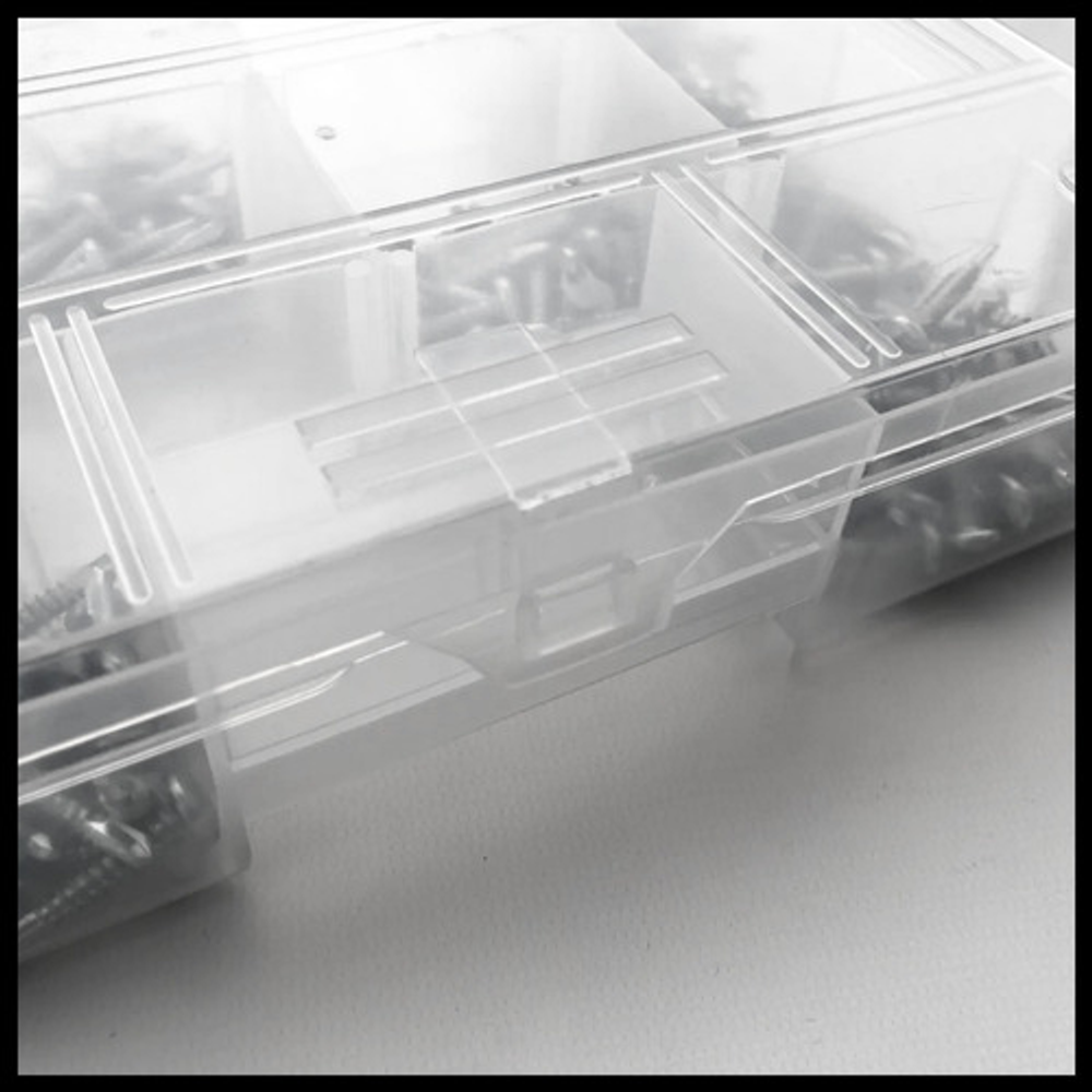 Diseñado con una tapa robusta que asegura los compartimentos, previniendo la pérdida de pequeños accesorios durante el transporte.
