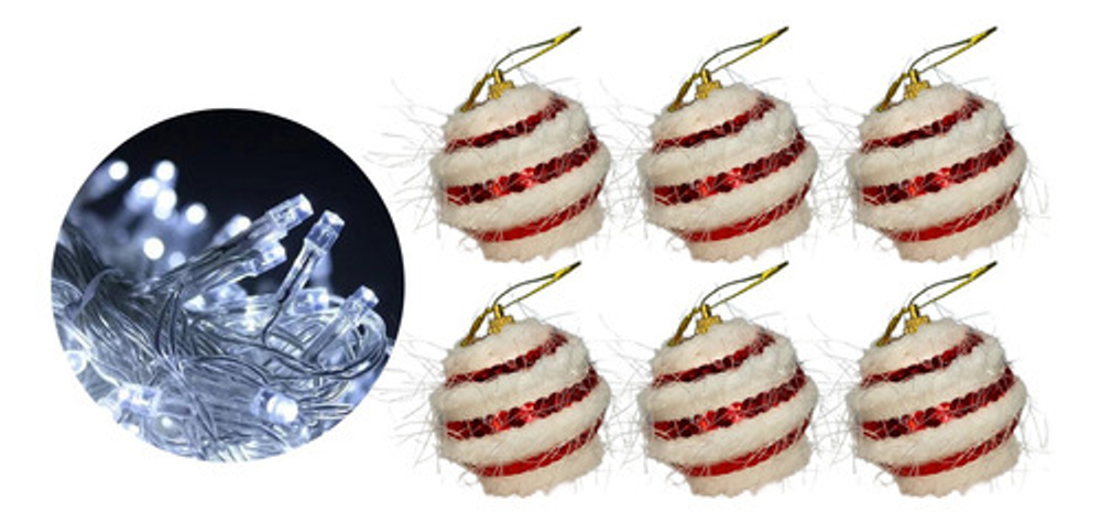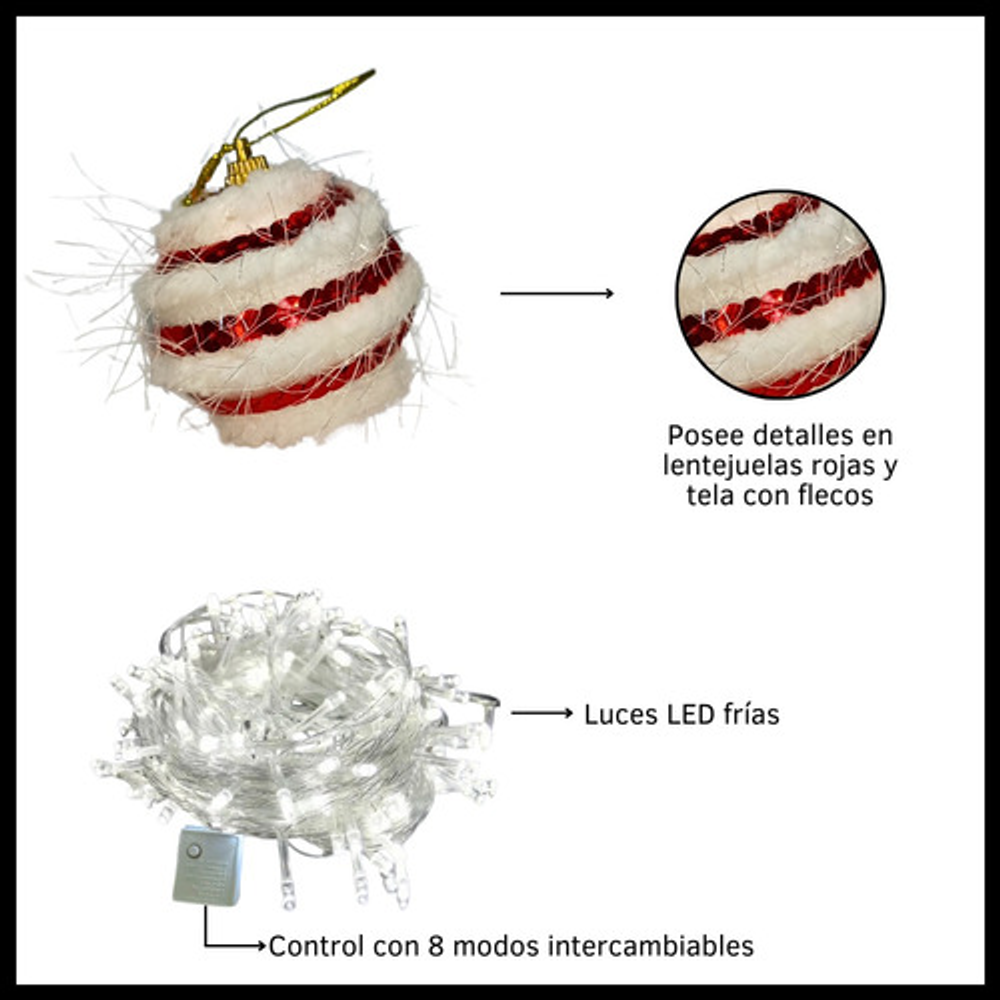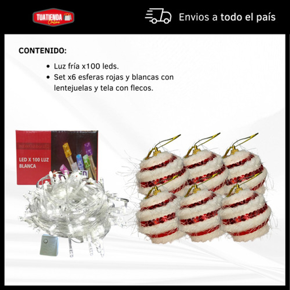 SET X6 BOLAS DE NAVIDAD + LUCES LED FRÍAS.