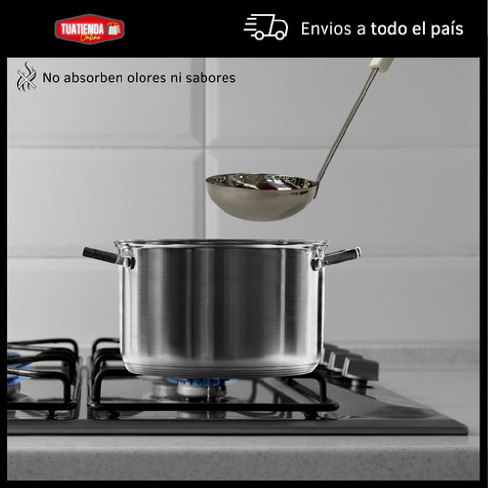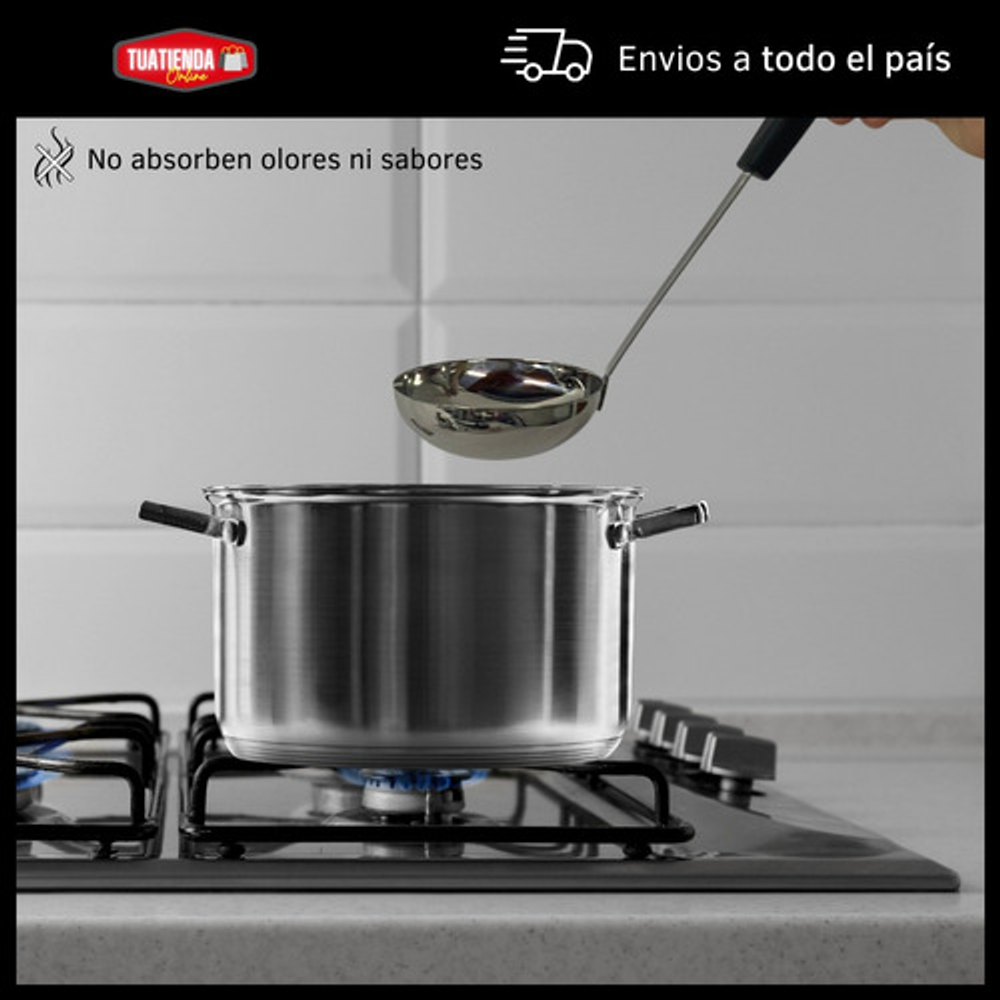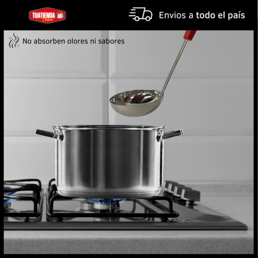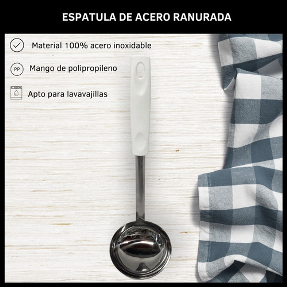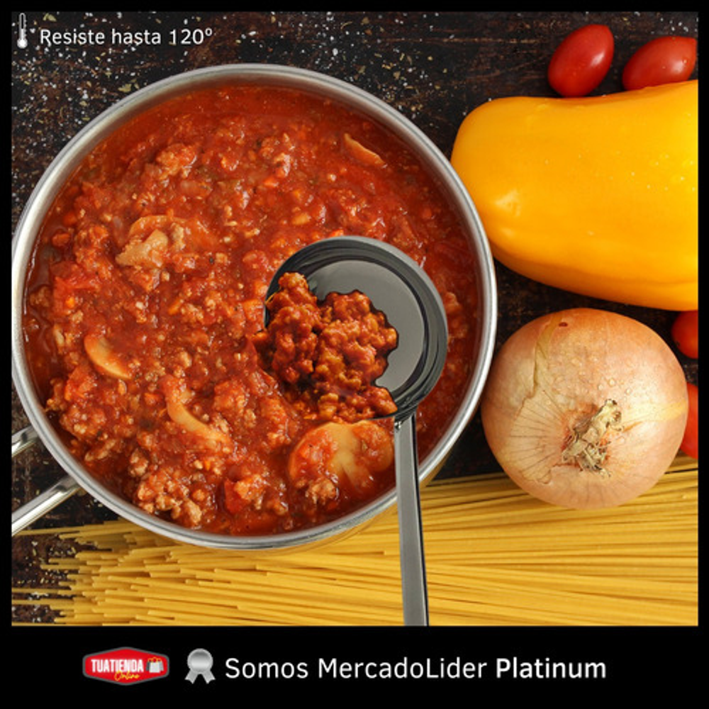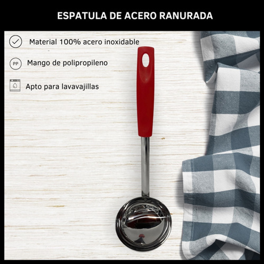 Caracteristicas: • Fabricado de acero inoxidable. • No absorbe olores ni sabores. • Apto para lavavajillas. • Diseño ergonómico. • Mango de polipropileno. • Resiste hasta 120°.