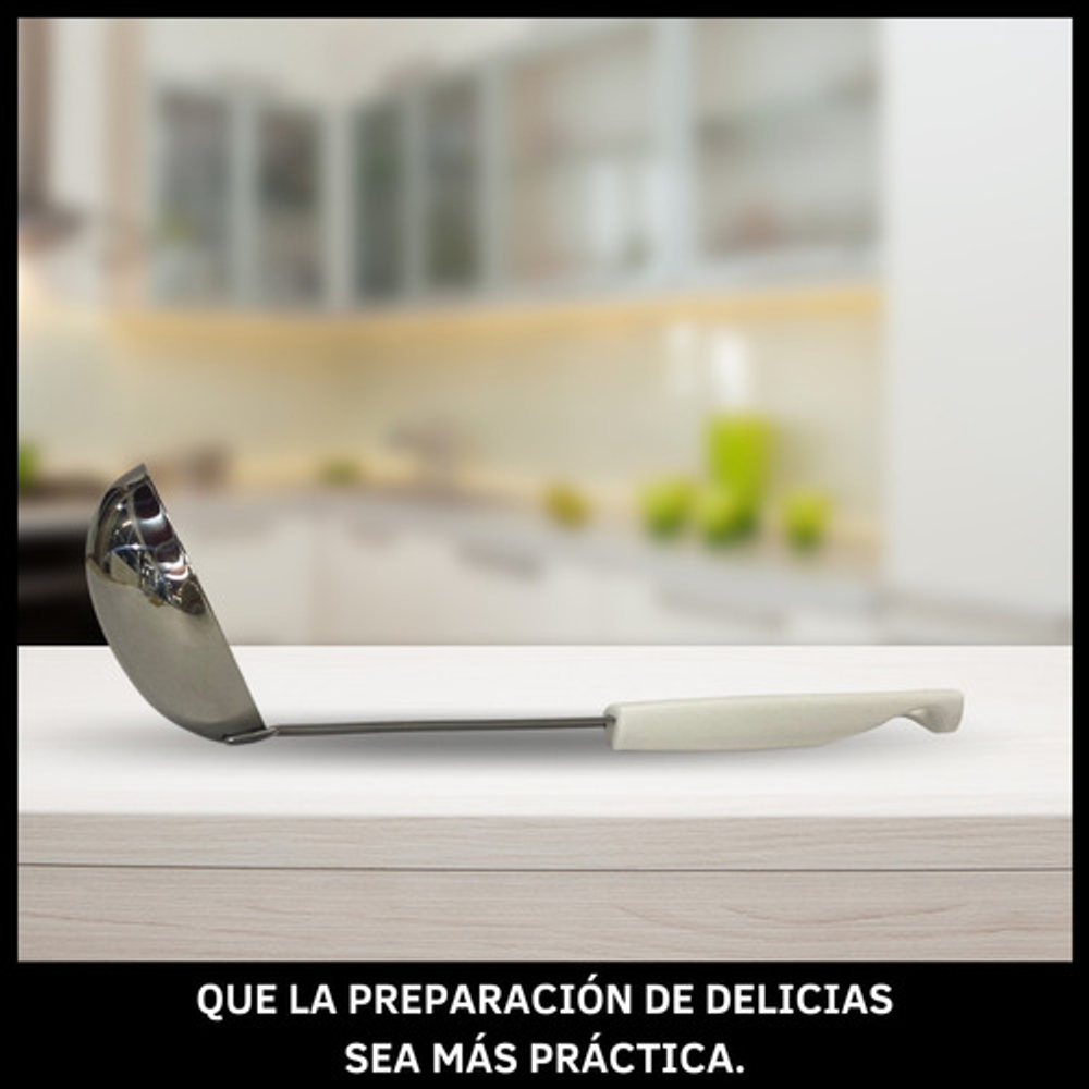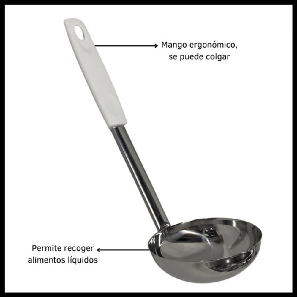 CUCHARON DE ACERO INOXIDABLE Y MANGO DE POLIPROPILENO