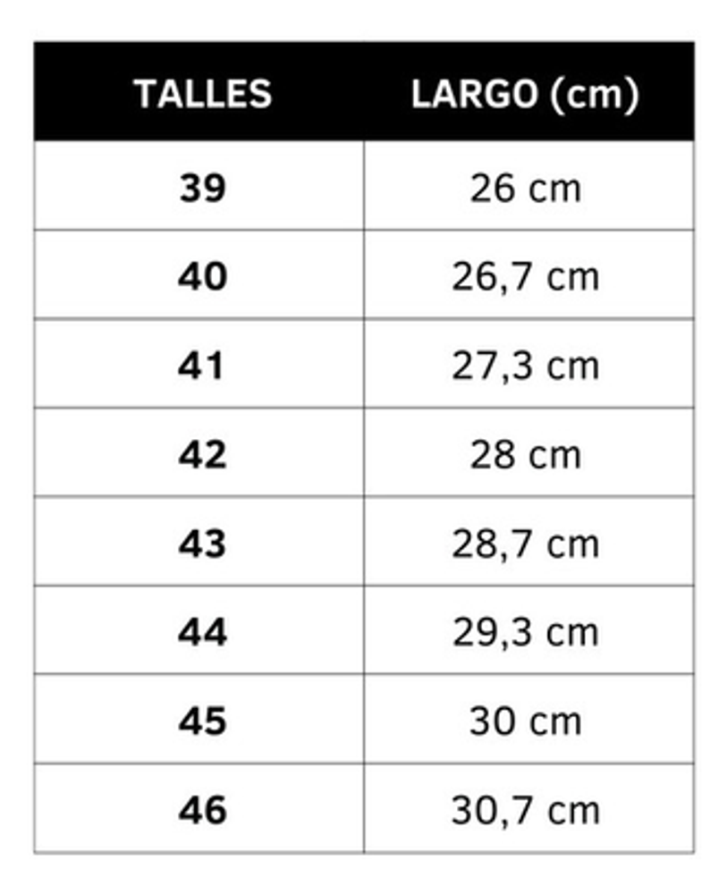Talles: Por favor consultar la tabla de talles que se encuentra en las imágenes del producto. Se recomienda sumar 0,5cm al largo total del pie para obtener una mejor comodidad.