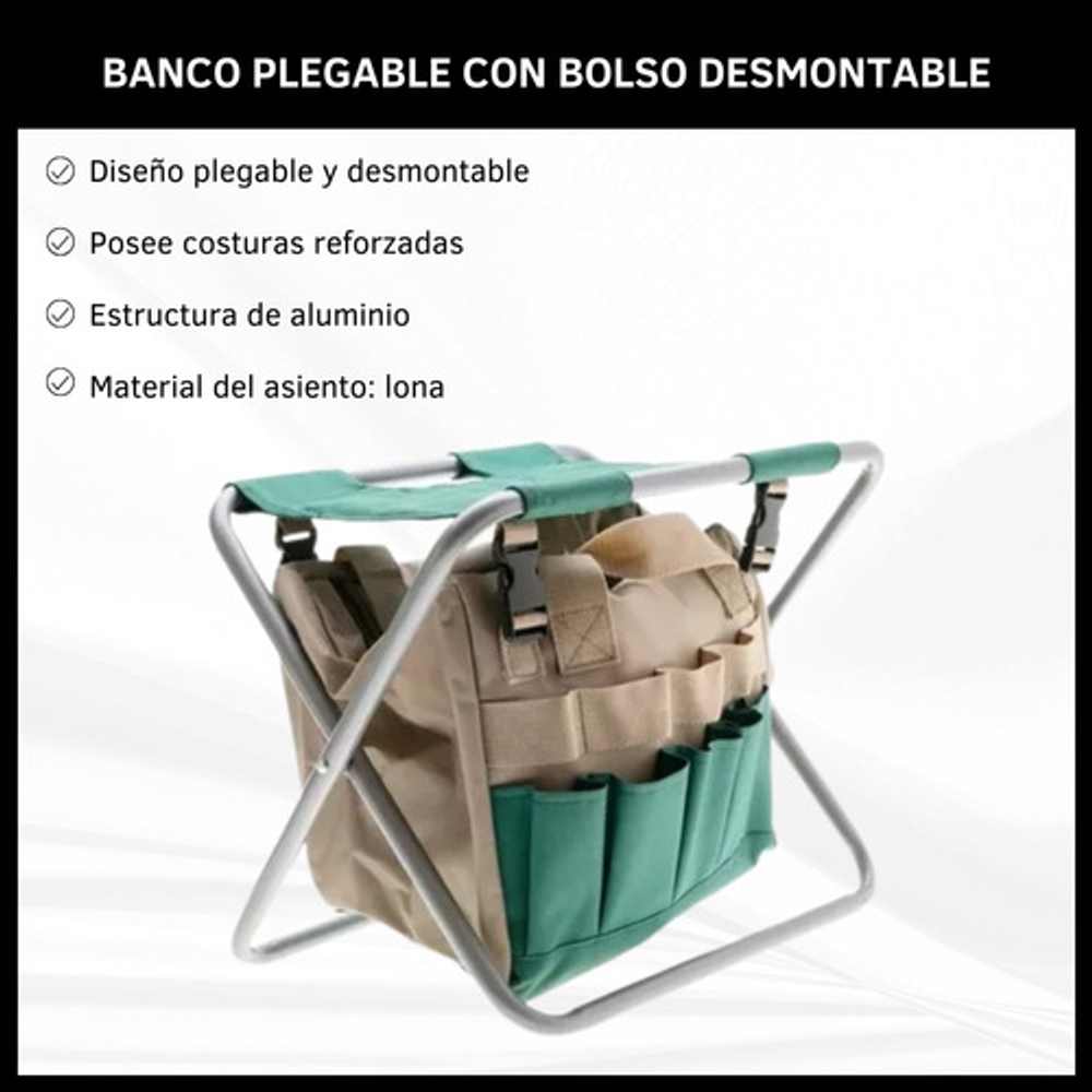 BANCO PLEGABLE CON BOLSO ORGANIZADOR, COMODIDAD Y ORGANIZACIÓN EN AVENTURAS AL AIRE LIBRE