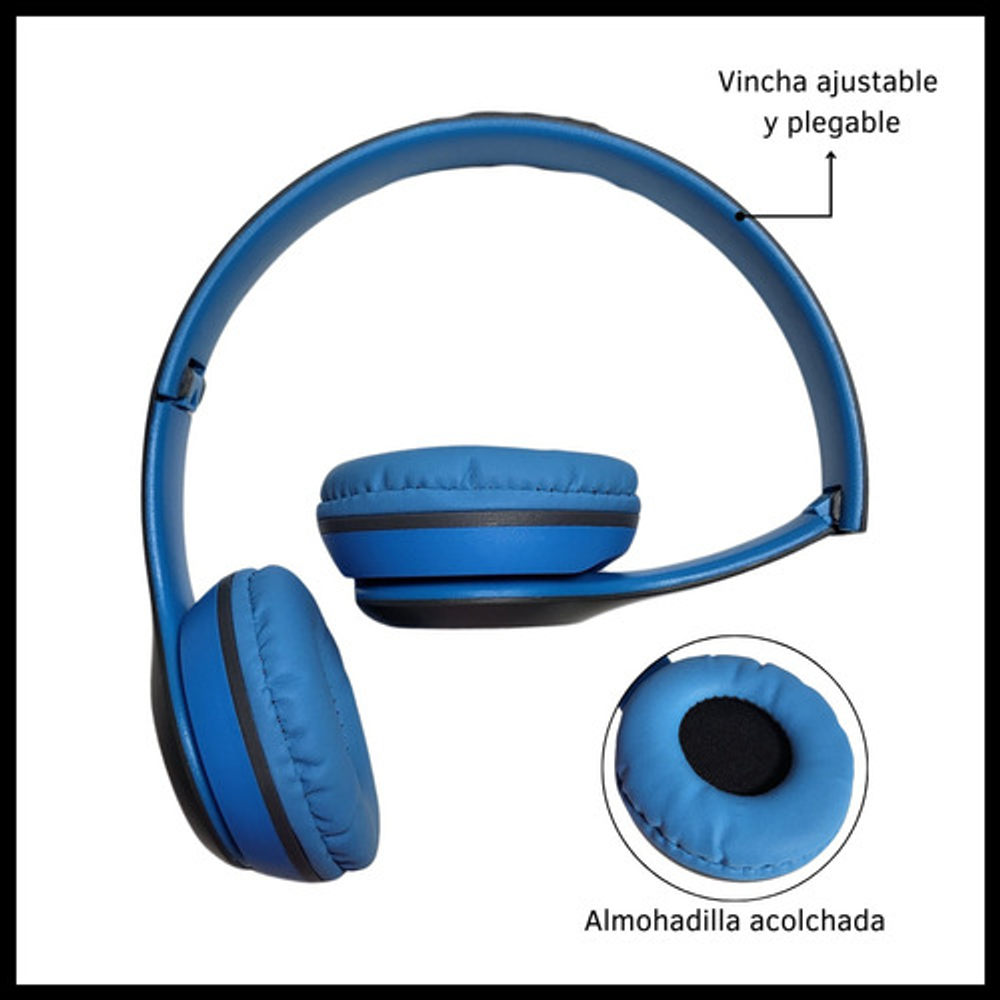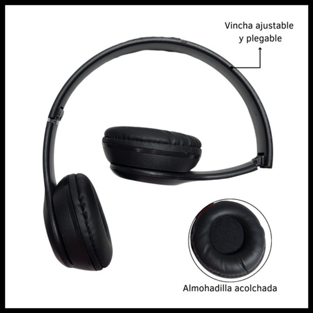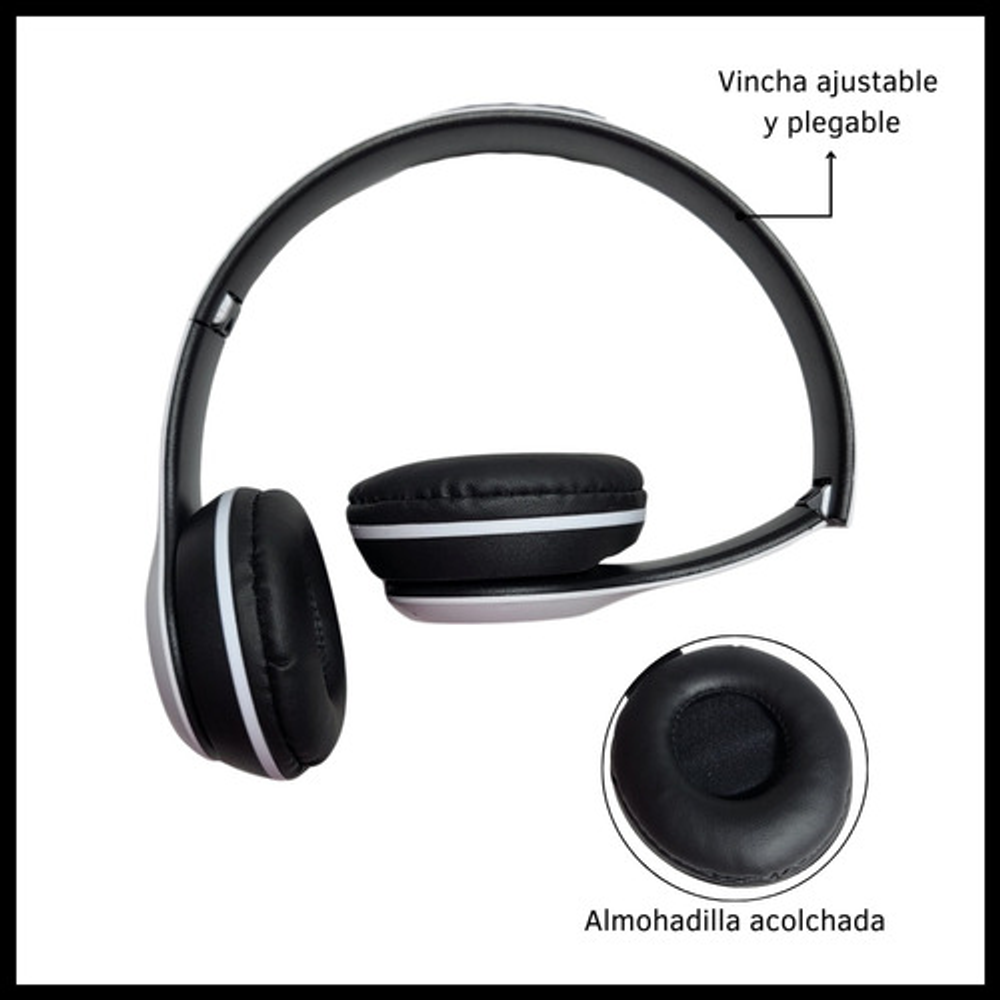 Características: • Sonido HD. • Entrada auxiliar. • Vincha ajustable. • Entrada tarjeta TF. • Entrada micro USB. • Botones de control. • Batería recargable (mediante cable USB). • Compatibles con múltiples dispositivos móviles. • Almohadilla acolchada para mas comodidad durante su uso. • Una opción preferida y cómoda para llevar a todos lados. • Se pueden utilizar conectados con bluetooth o con el cable auxiliar.