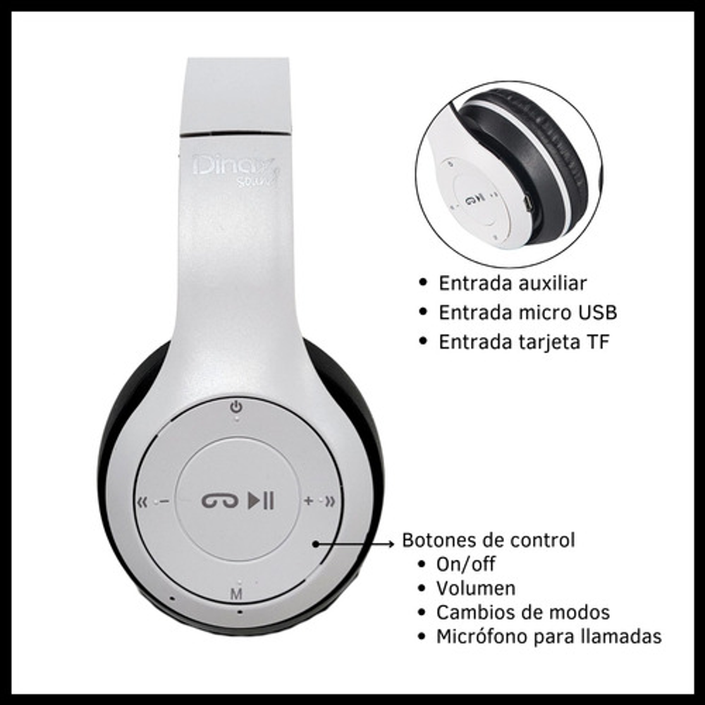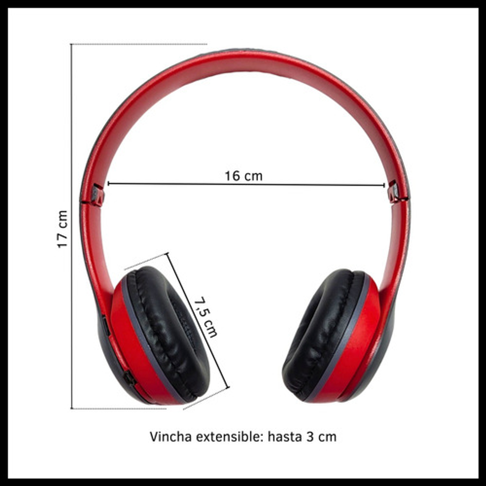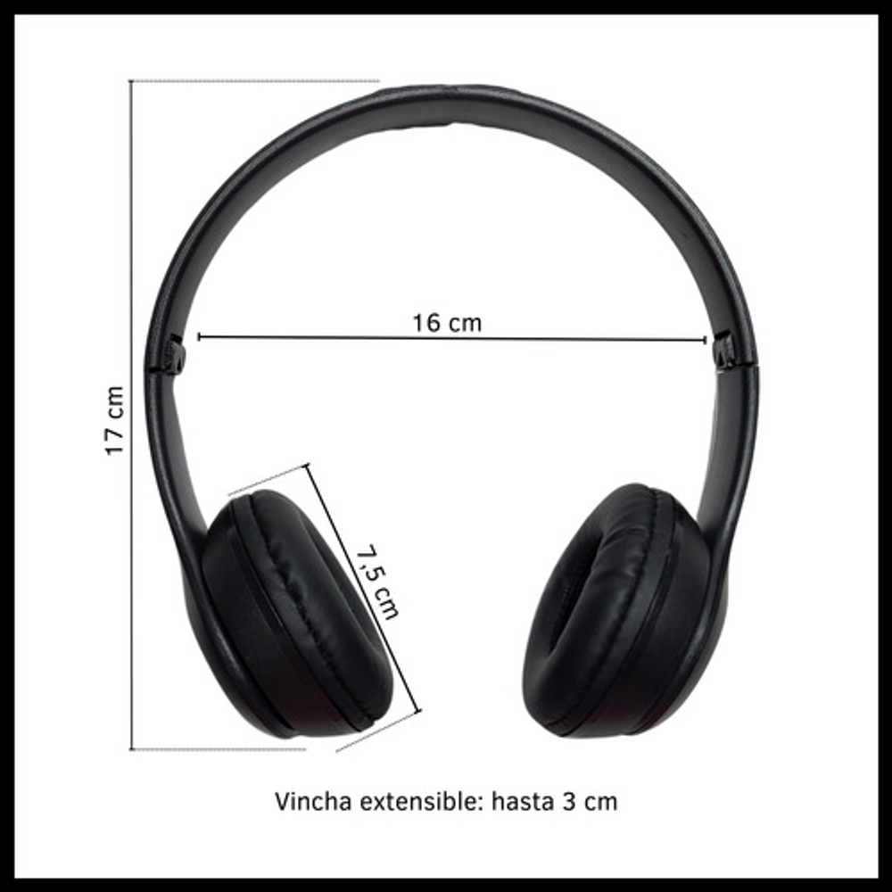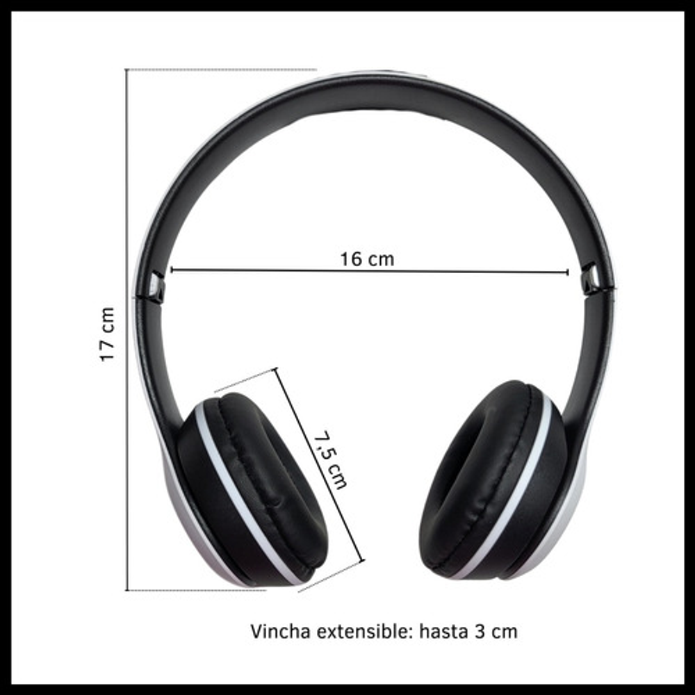 Características: • Sonido HD. • Entrada auxiliar. • Vincha ajustable. • Entrada tarjeta TF. • Entrada micro USB. • Botones de control. • Batería recargable (mediante cable USB). • Compatibles con múltiples dispositivos móviles. • Almohadilla acolchada para mas comodidad durante su uso. • Una opción preferida y cómoda para llevar a todos lados. • Se pueden utilizar conectados con bluetooth o con el cable auxiliar.