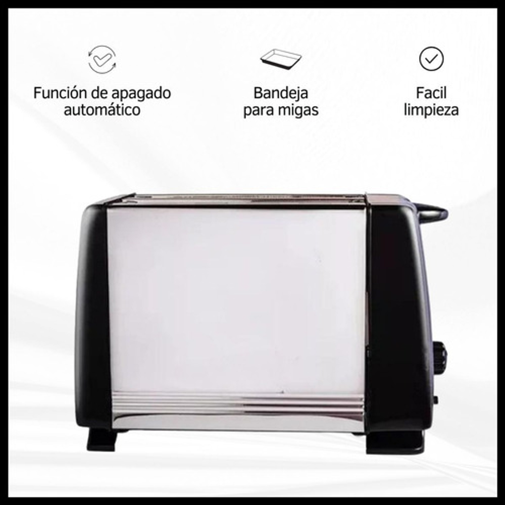 Características: -Cuerpo de acero inoxidable. -Control variable del tiempo. -Potencia de 900W. -2 Ranuras. -Función de apagado automático. -Contiene bandeja para migas. -Fácil de limpiar.