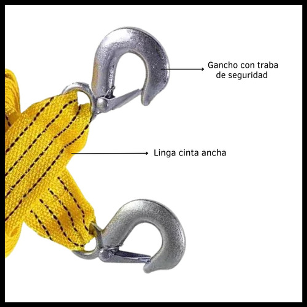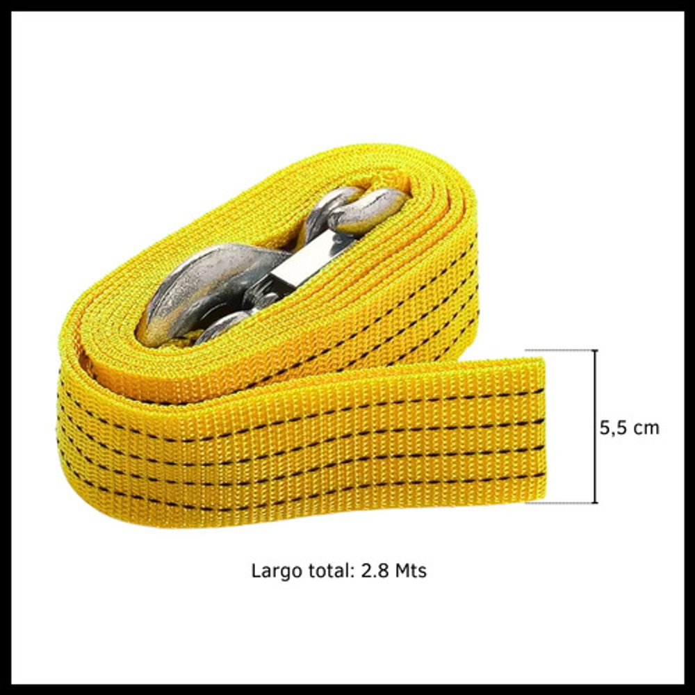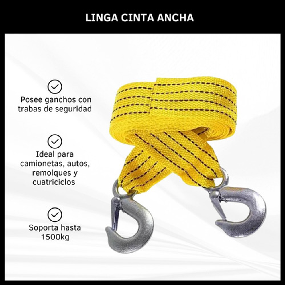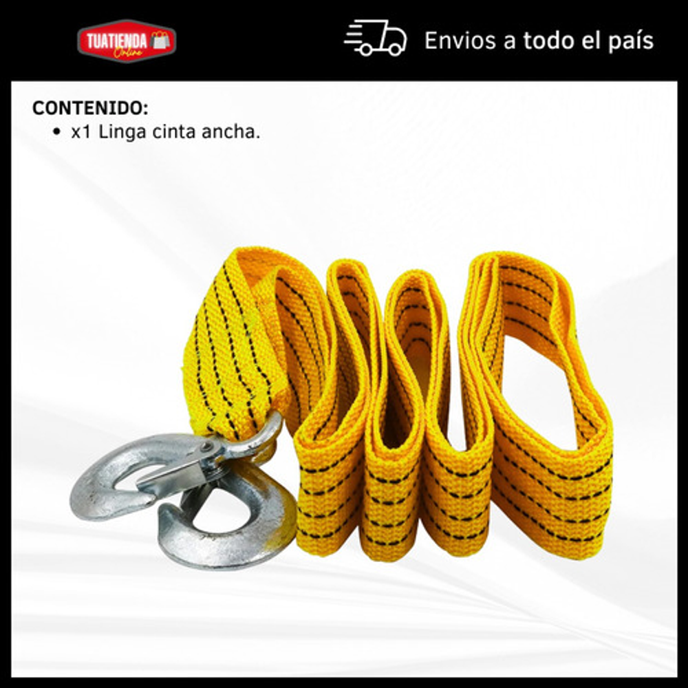 LINGA SOGA PLANA REMOLQUE 2.8 MTS 1.5 TN GANCHOS METALICOS