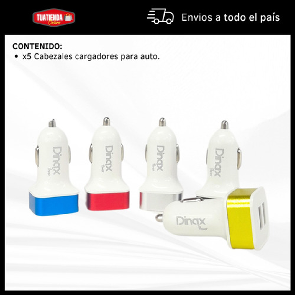 Características: -Se conecta al encendedor del auto -Posee 2 puertos USB -Pack por 5 unidades -12V