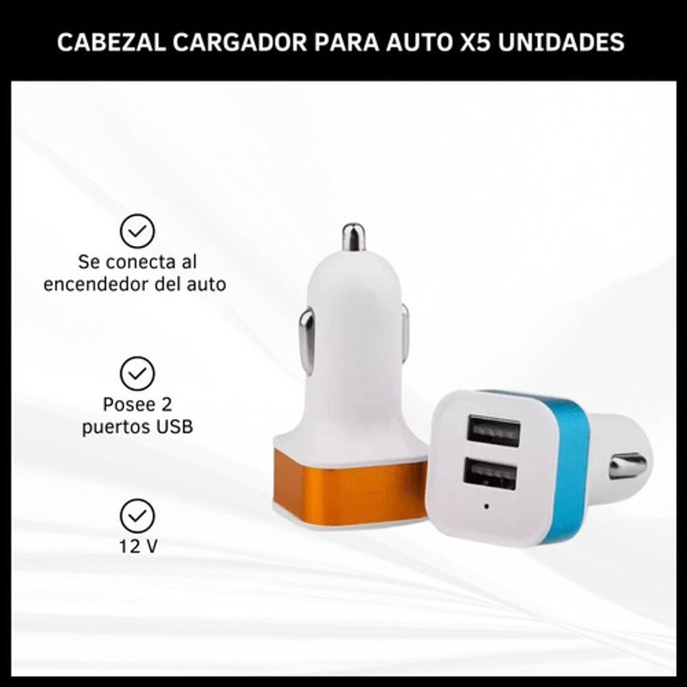 CABEZAL PARA AUTOS CON DOS ENTRADAS USB PACK POR 5 UNIDADES
