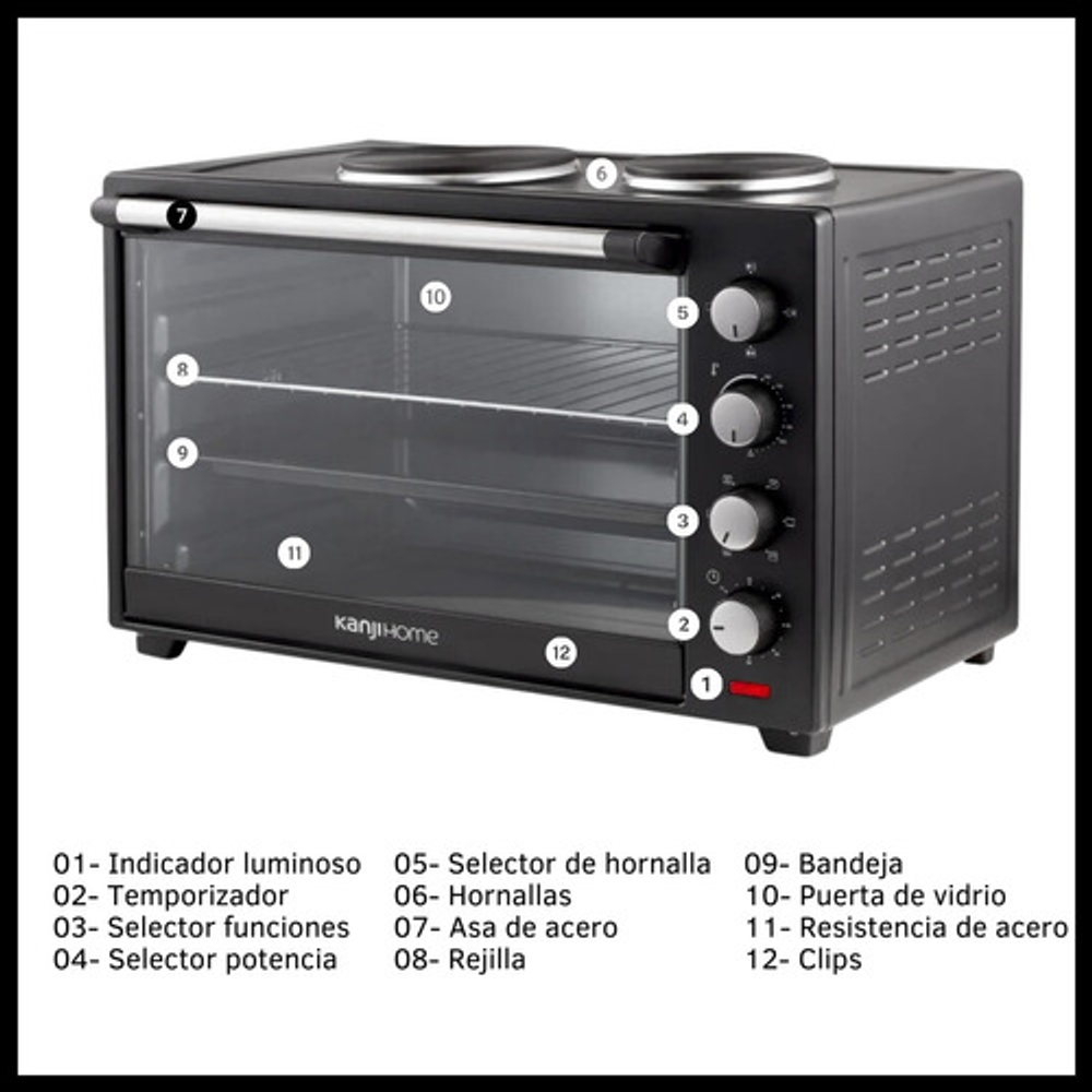 HORNO ELÉCTRICO KANJI DOBLE ANAFE 50 LITROS
