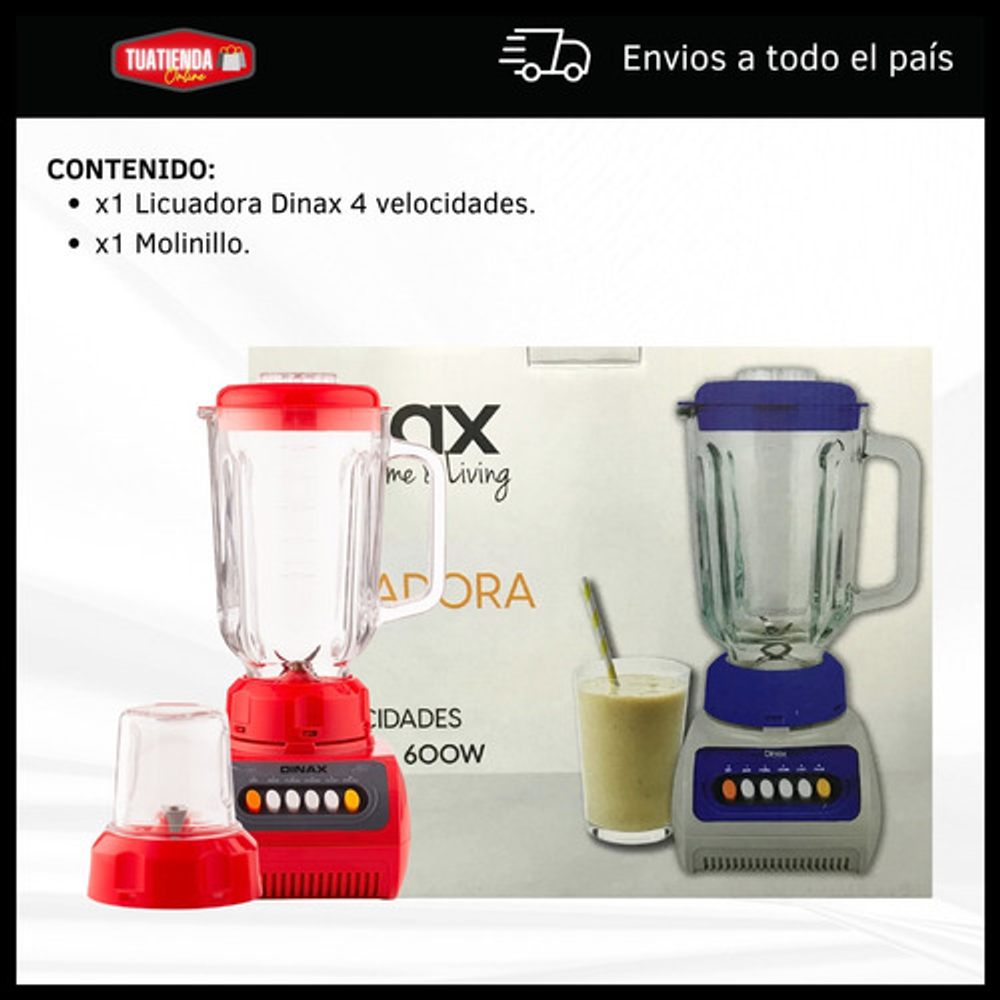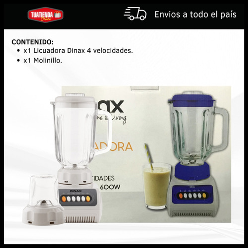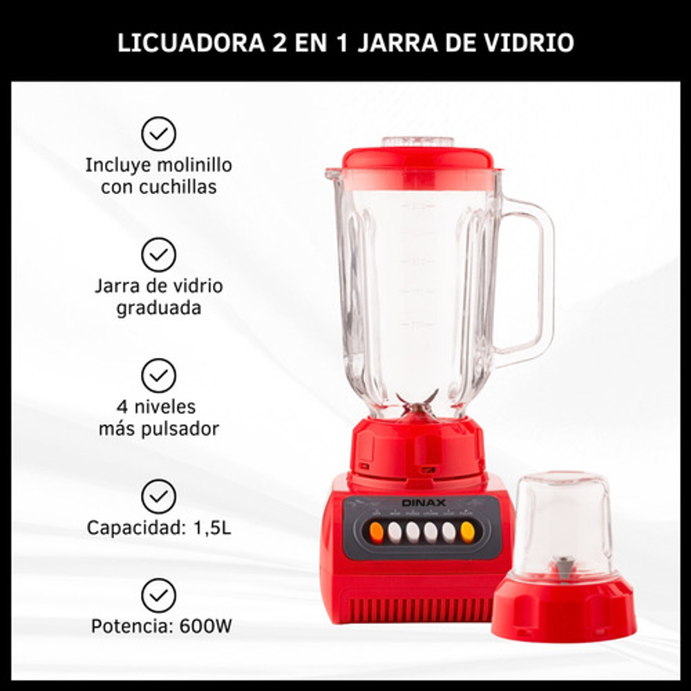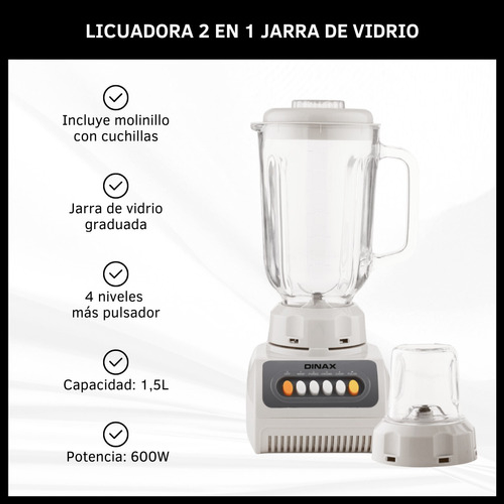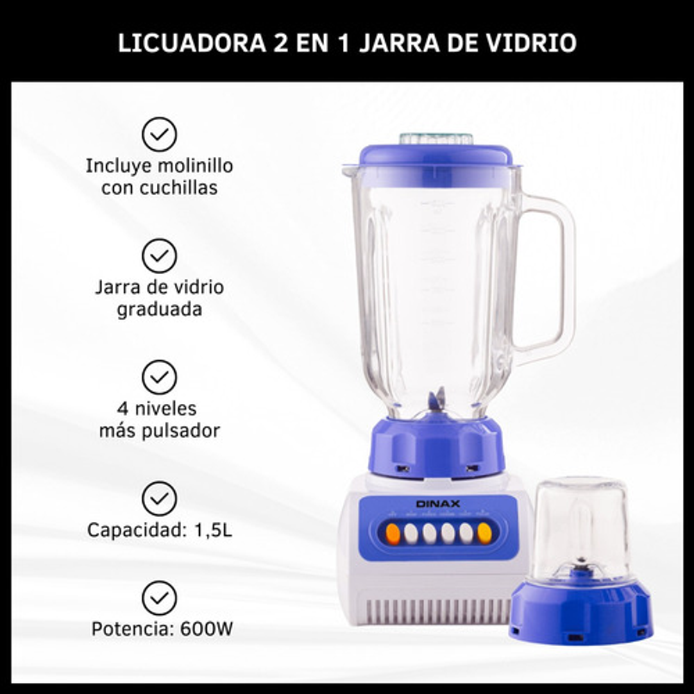 LICUADORA 2 EN 1 CON JARRA DE VIDRIO 4 NIVELES CON MOLINILLO