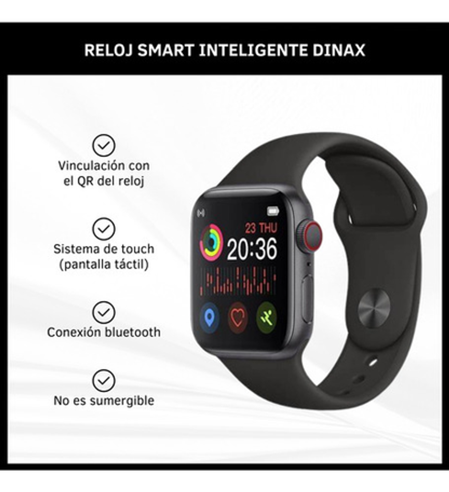 Funciones del smartwatch: Alarma,Clima,Control de sueño,Cronómetro,Cuenta Calorías,Cuenta pasos,Fotos Remotas,Modo Multi-deportes,Presión sanguinea,Recepción de Notificaciones,Ritmo cardiaco