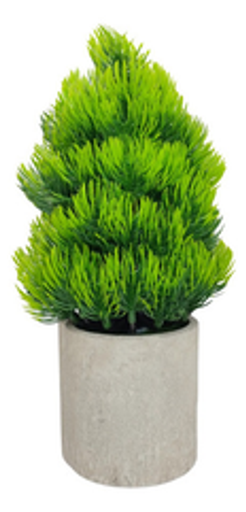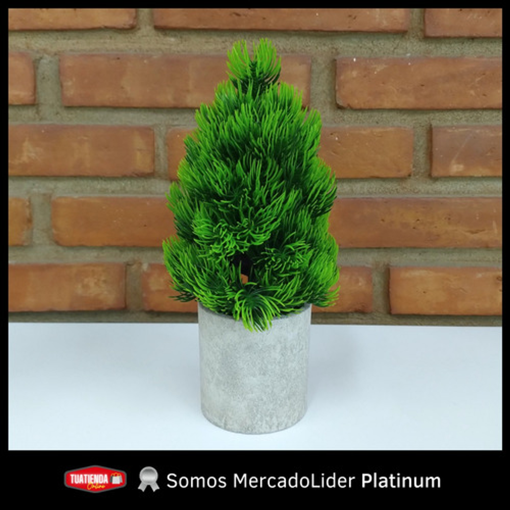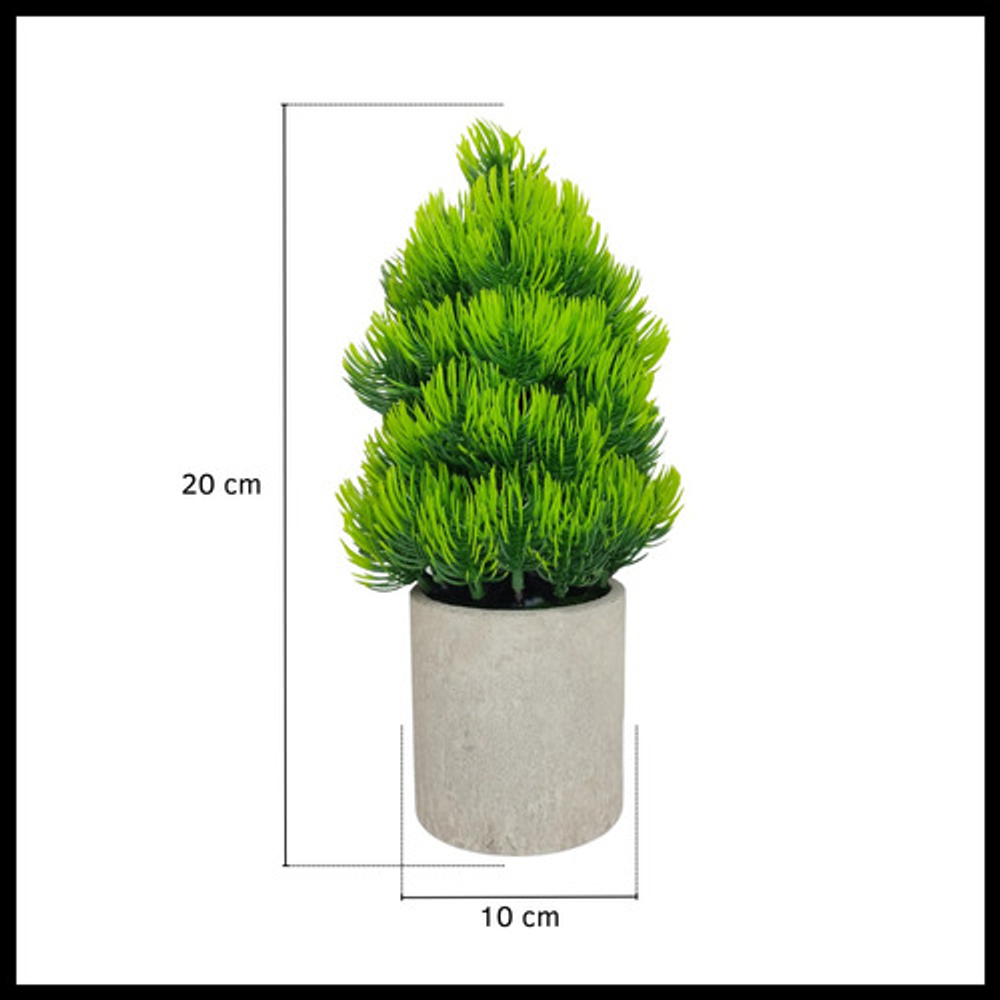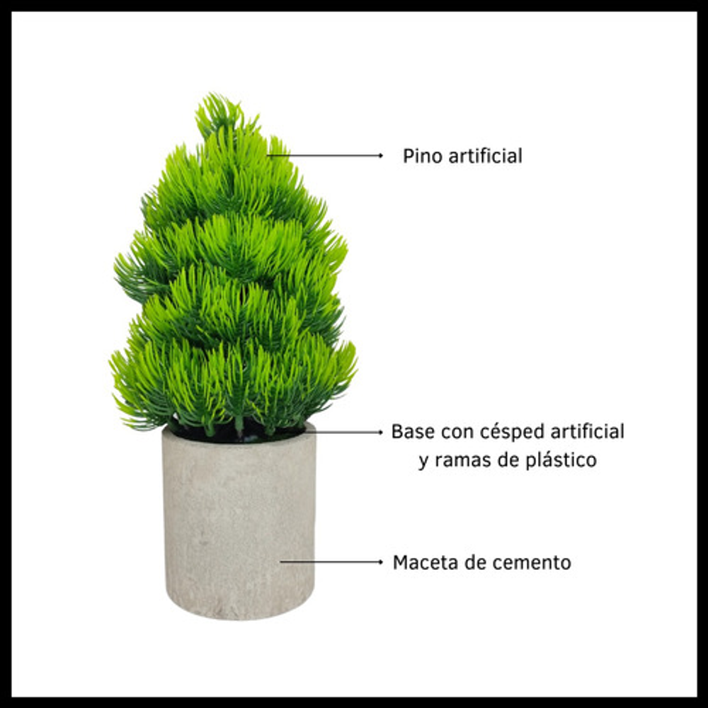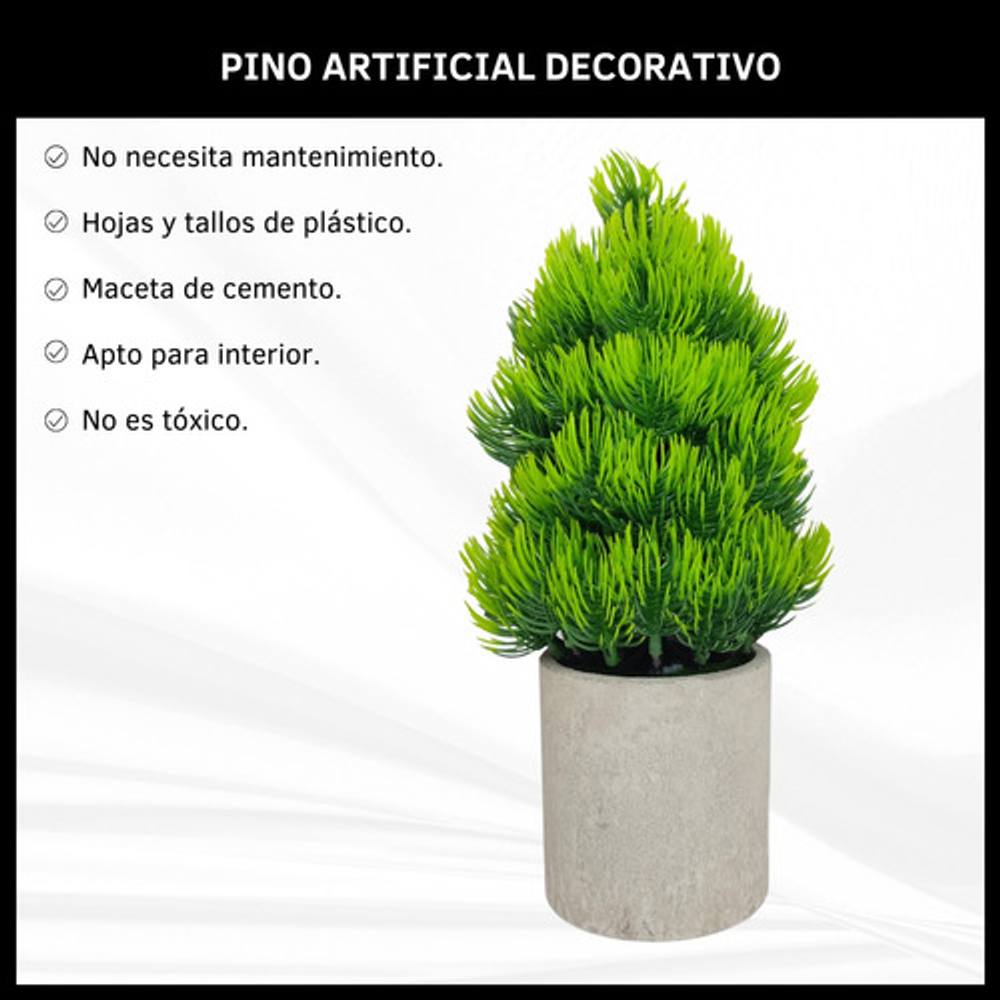 Características: • Pino con ramas y hojas de plástico • Maceta de cemento • No necesita mantenimiento • Apto para interiores • No es tóxico