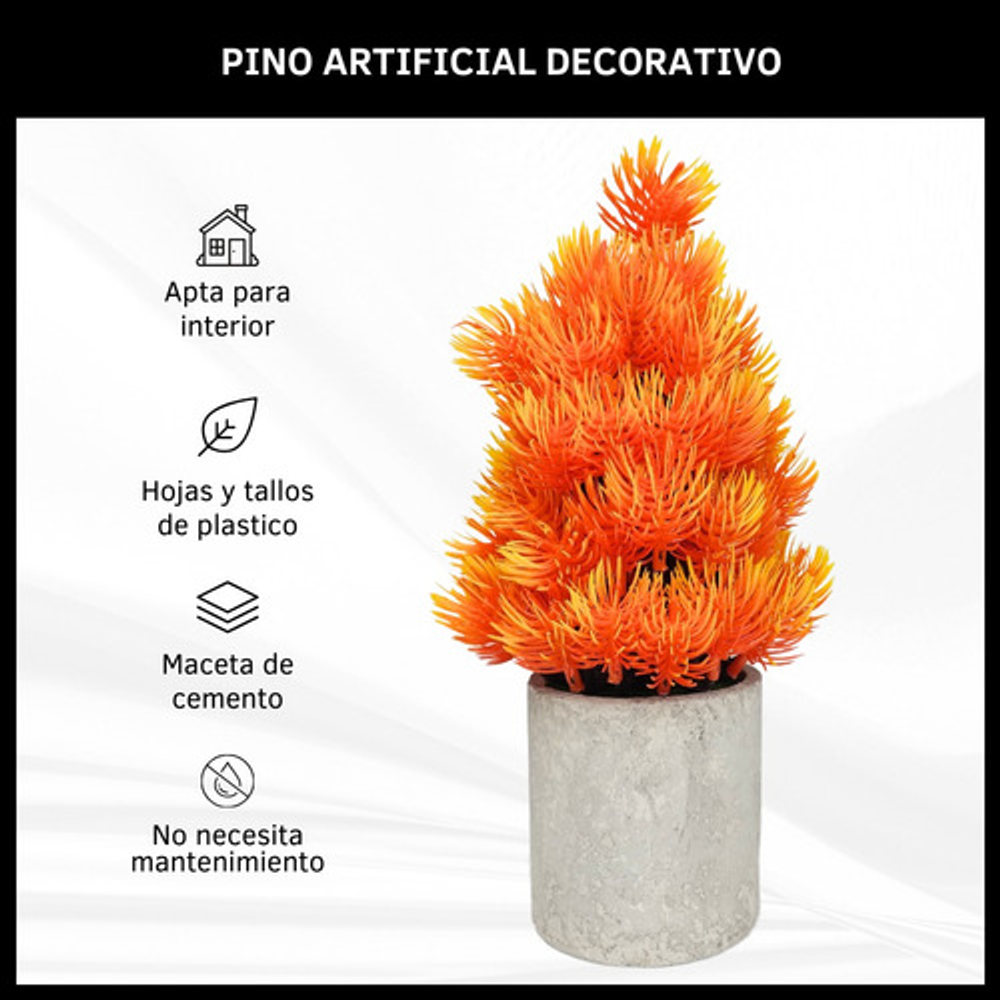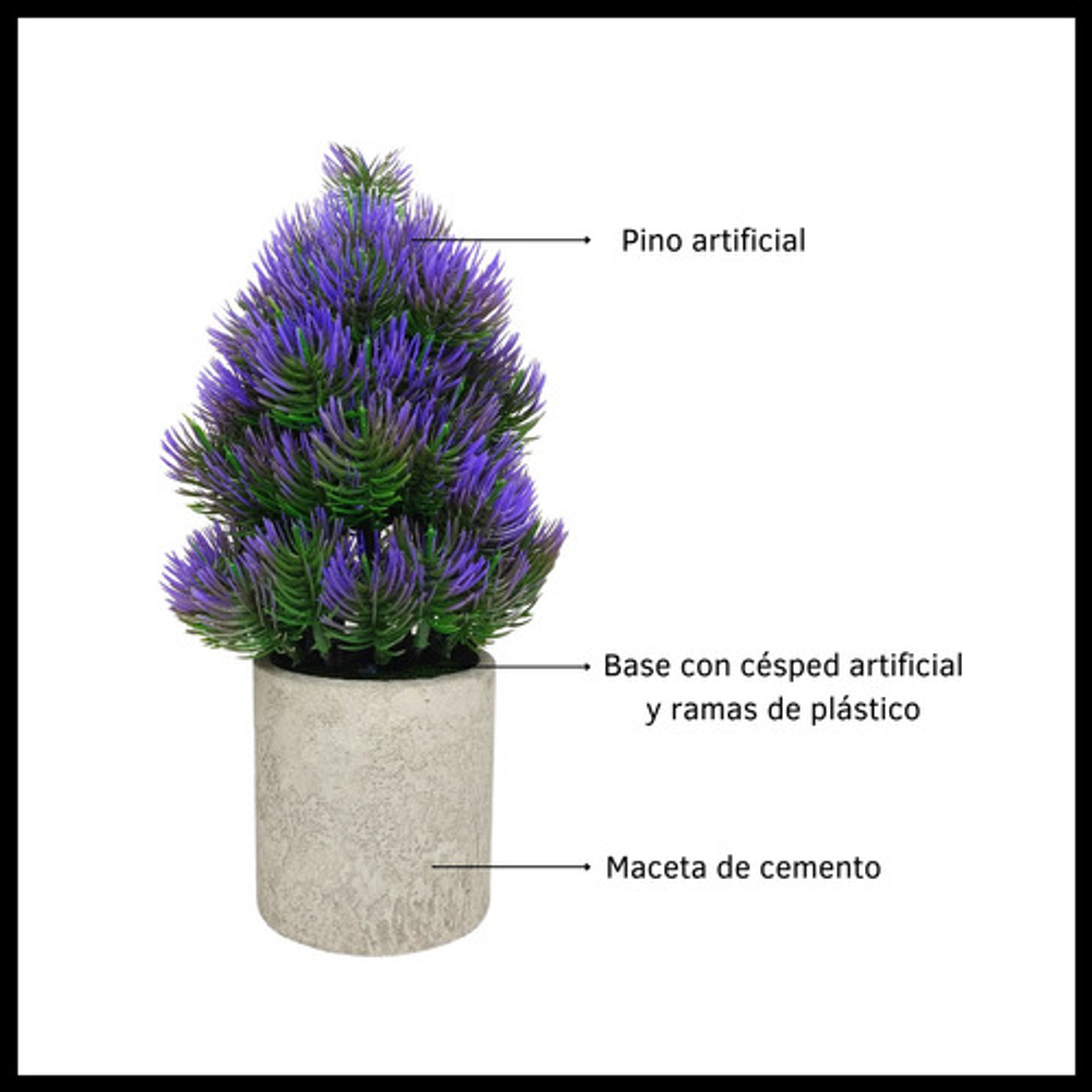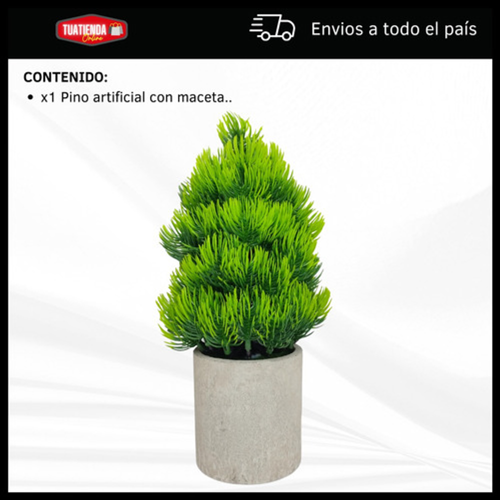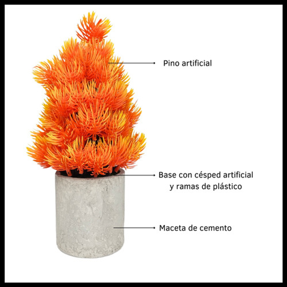Características: • Pino con ramas y hojas de plástico • Maceta de cemento • No necesita mantenimiento • Apto para interiores • No es tóxico