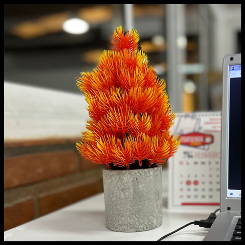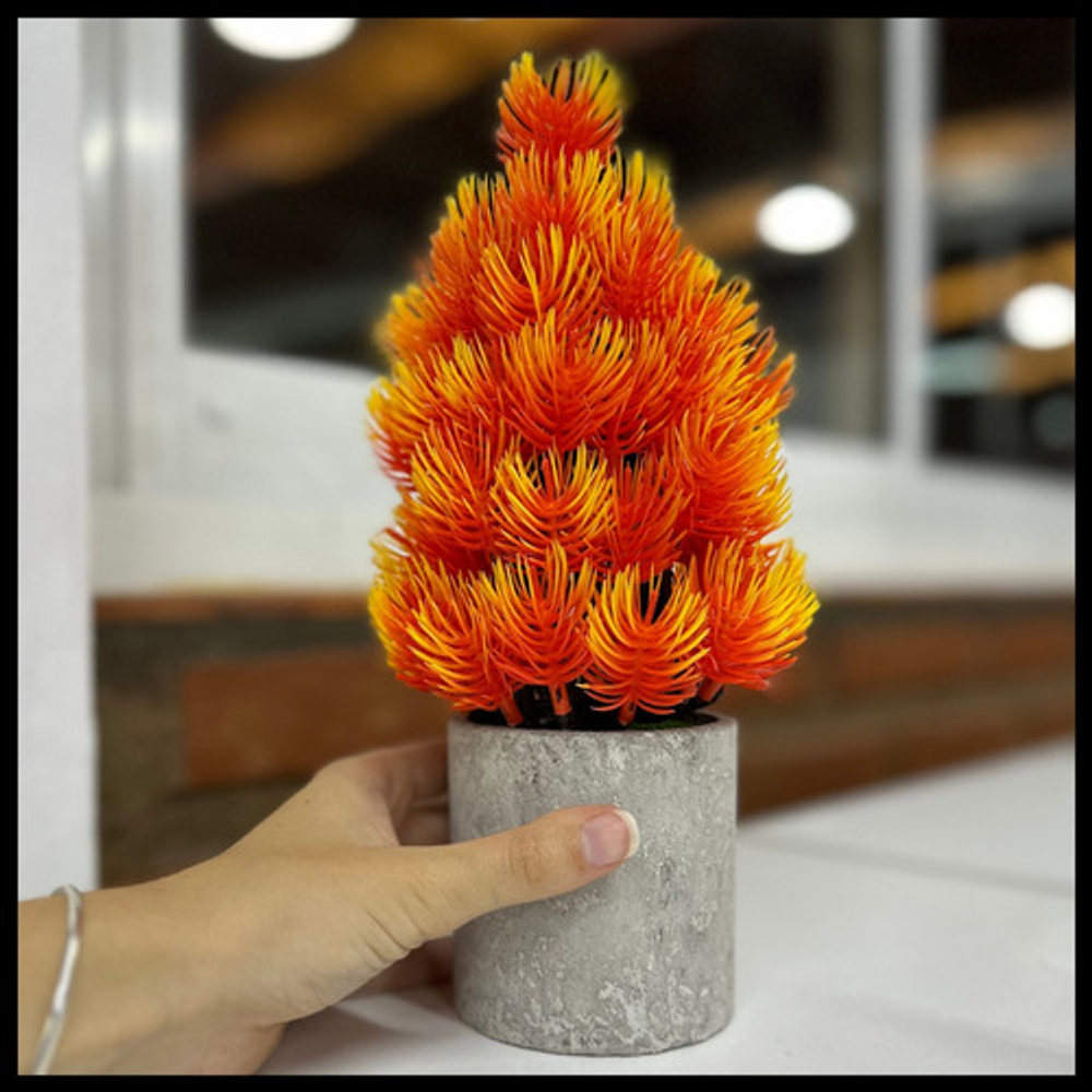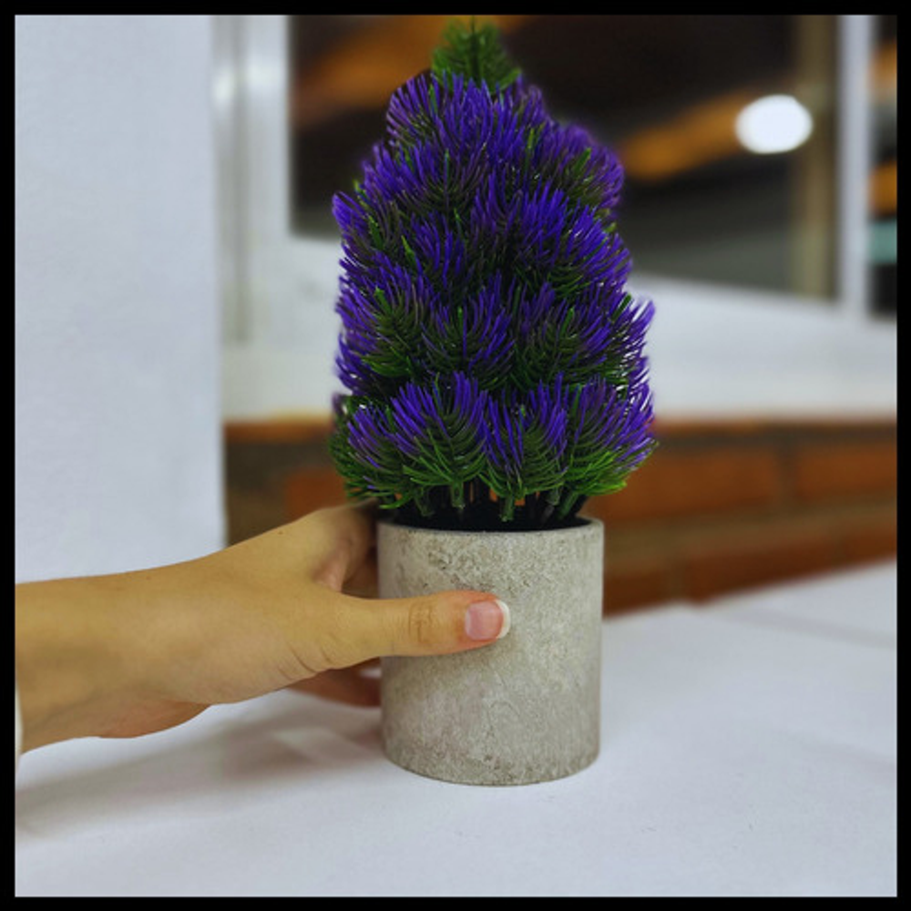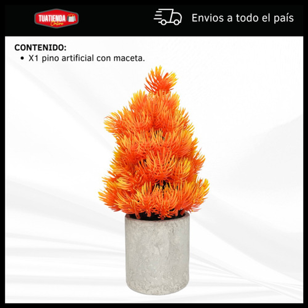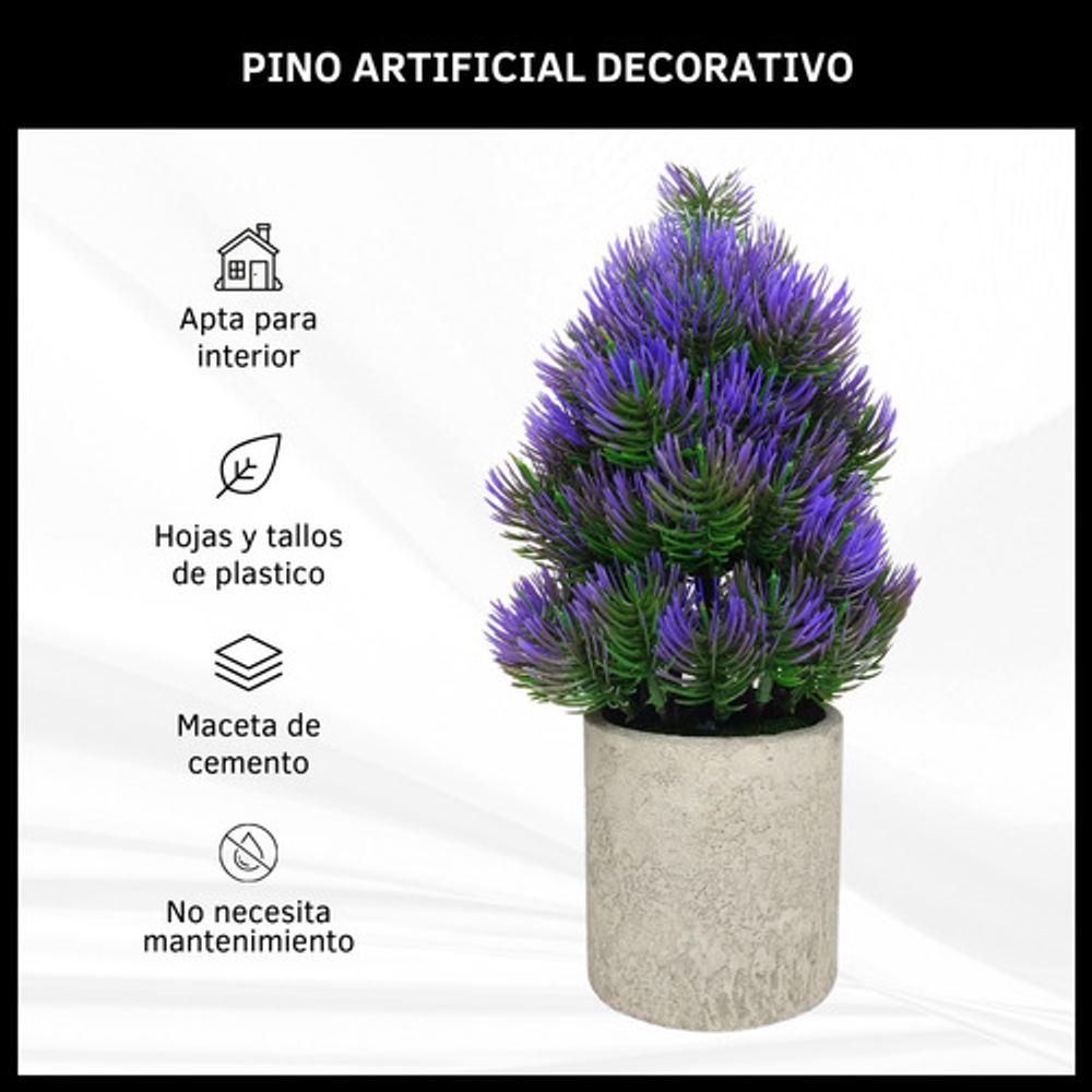 Características: • Pino con ramas y hojas de plástico • Maceta de cemento • No necesita mantenimiento • Apto para interiores • No es tóxico
