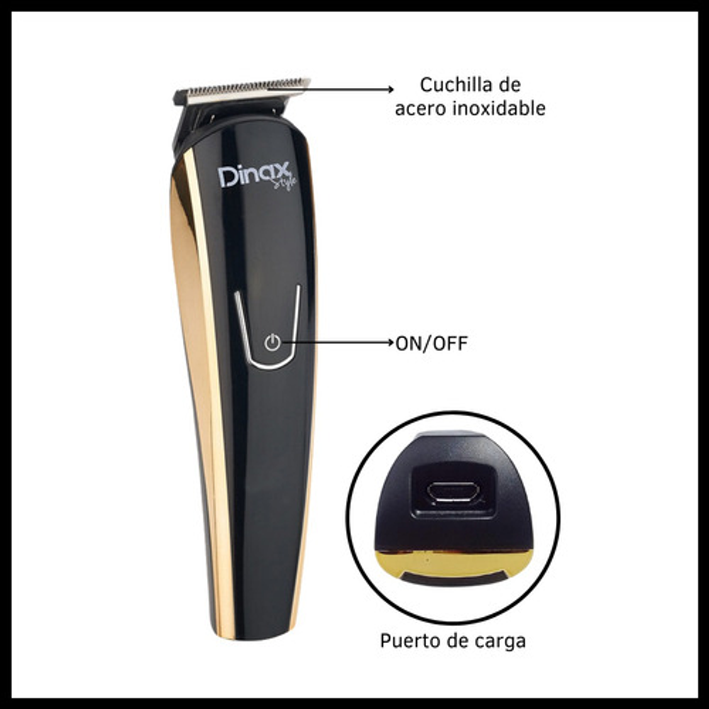 Características: • Funciones: corte de pelo, barba, vellos corporales, patillas, vello de nariz y orejas. • Cuchillas intercambiables de acero inoxidable. • Carga directa con puerto USB. • Posee cabezales lavables. • Uso inalámbrico. • Batería interna.