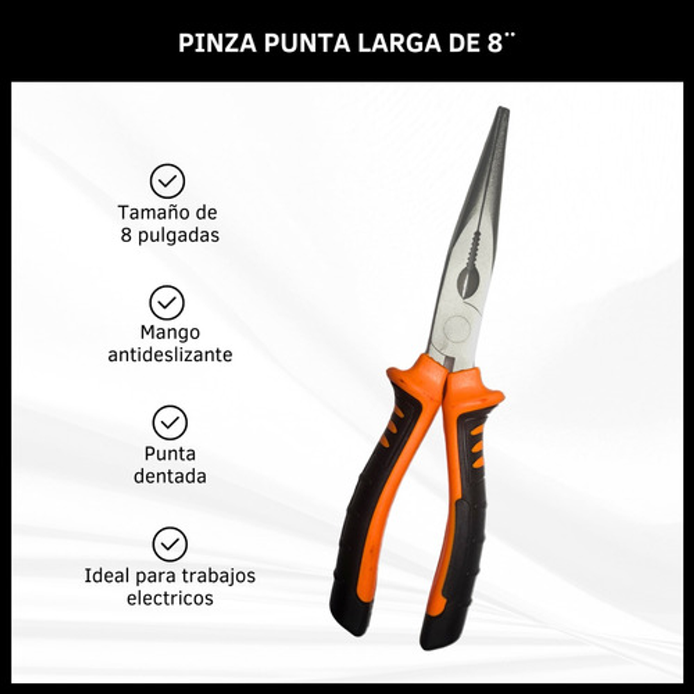 PINZA DE PUNTA LARGA DE 8" ALICATE CORTA CABLE