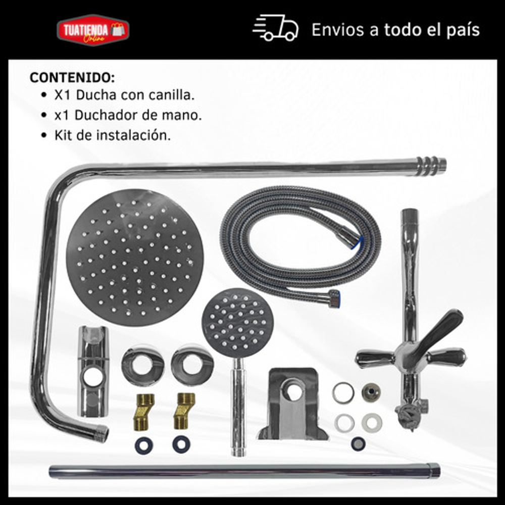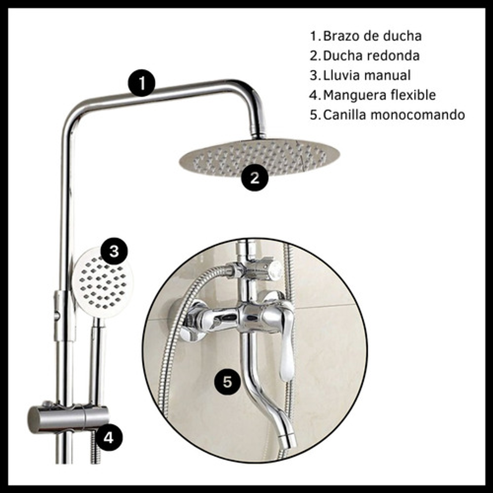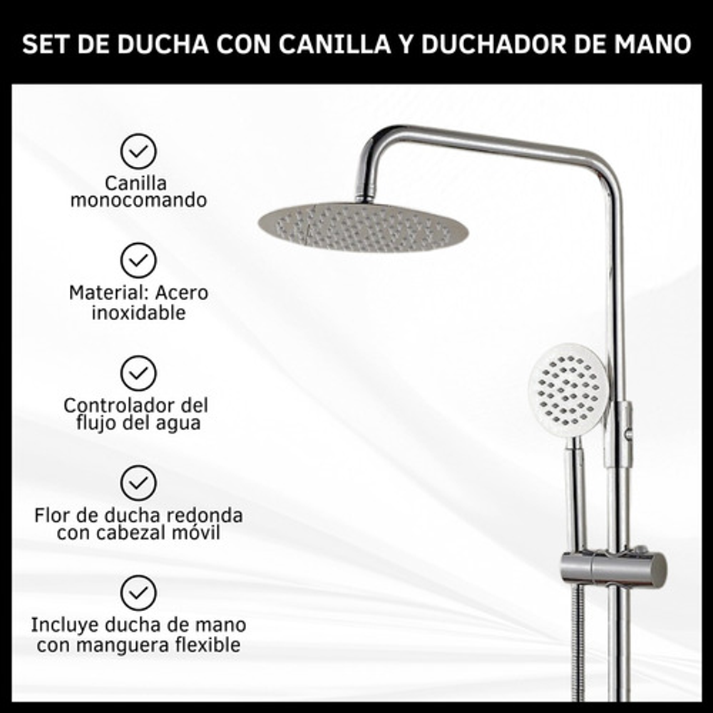 SET DE DUCHA COMPLETO: DUCHA REDONDA, LLUVIA MANUAL, CANILLA MONOCOMANDO PARA PARED