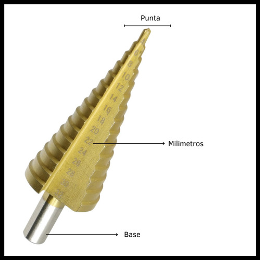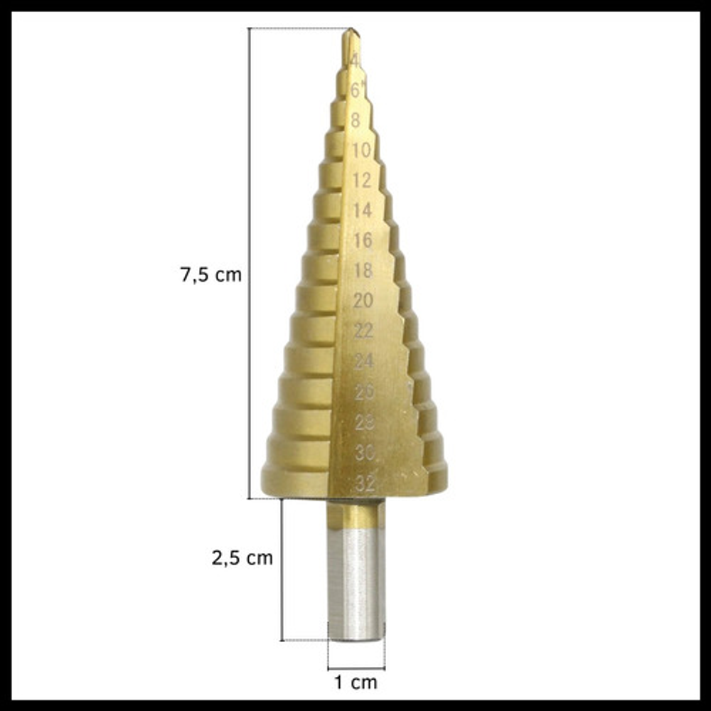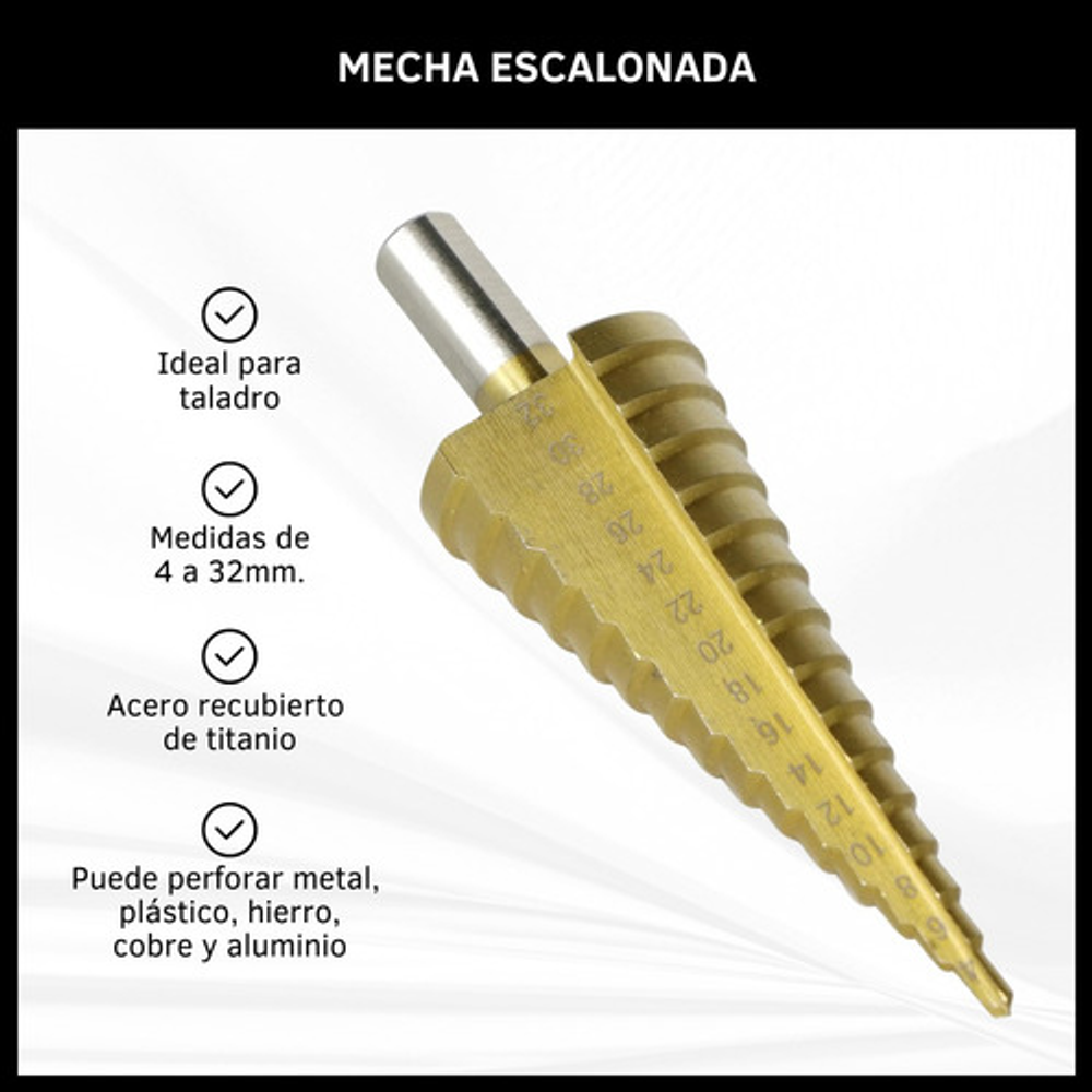 MECHA ESCALONADA CÓNICA CON BAÑO DE TITANIO DE 4 A 32 MM