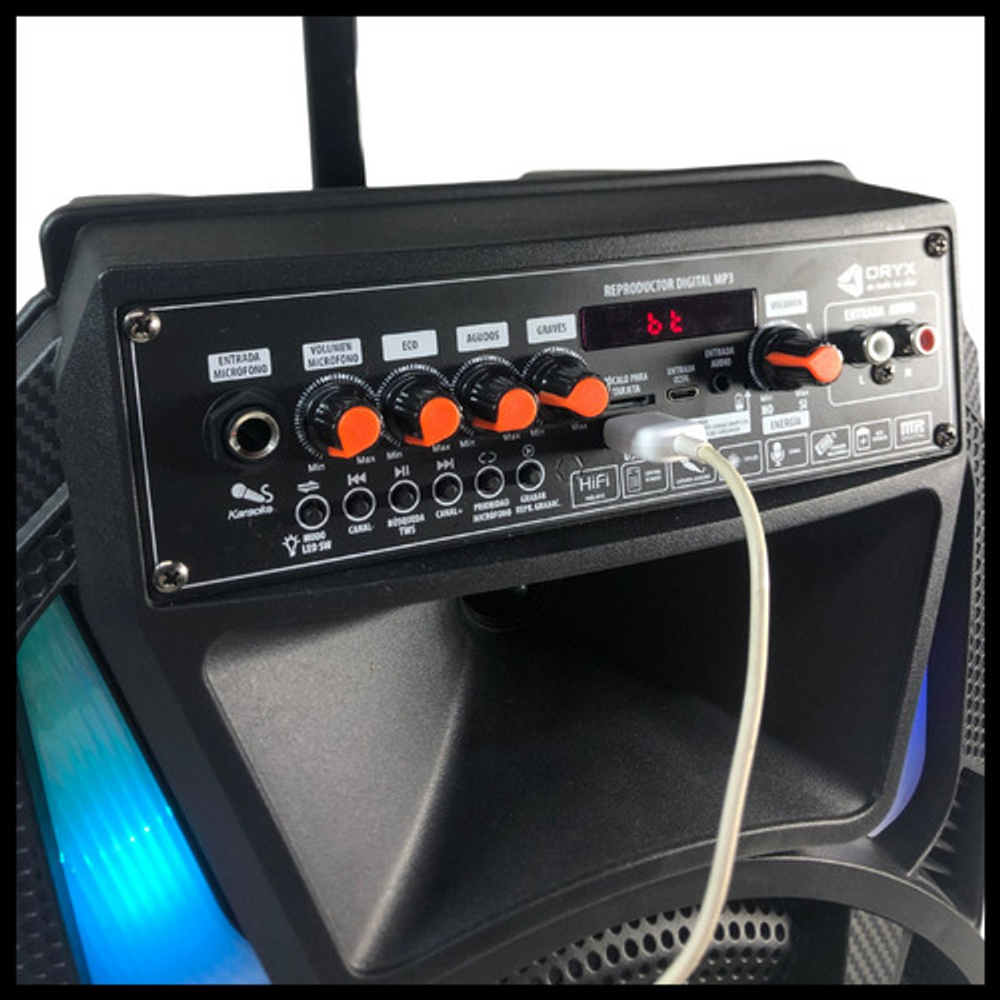 PARLANTE INALÁMBRICO CON LUCES LED Y MIRÓFONO.