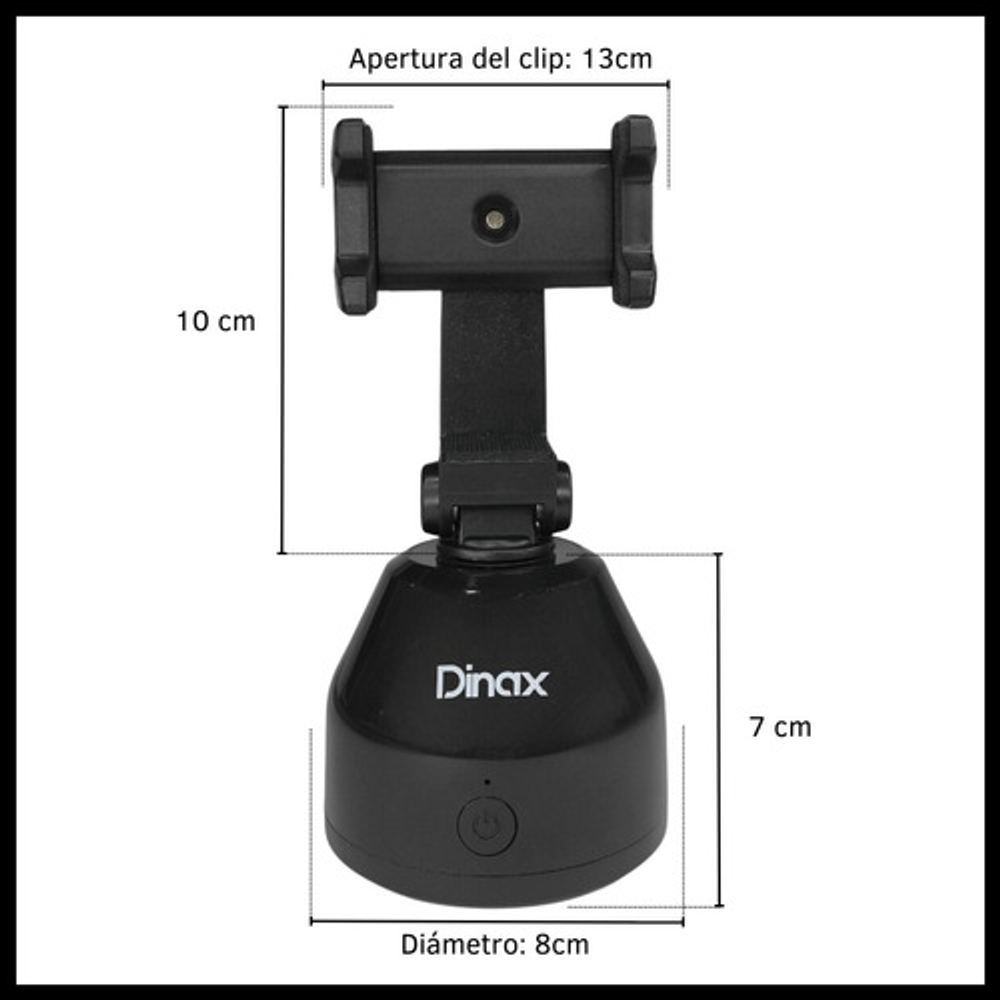 Características: • Sistema de seguimiento facial inteligente para mantener el enfoque en el rostro mientras se mueve. • Base del trípode con capacidad de rotación completa. • Uso en posición vertical u horizontal. • Incluye cable USB para carga.