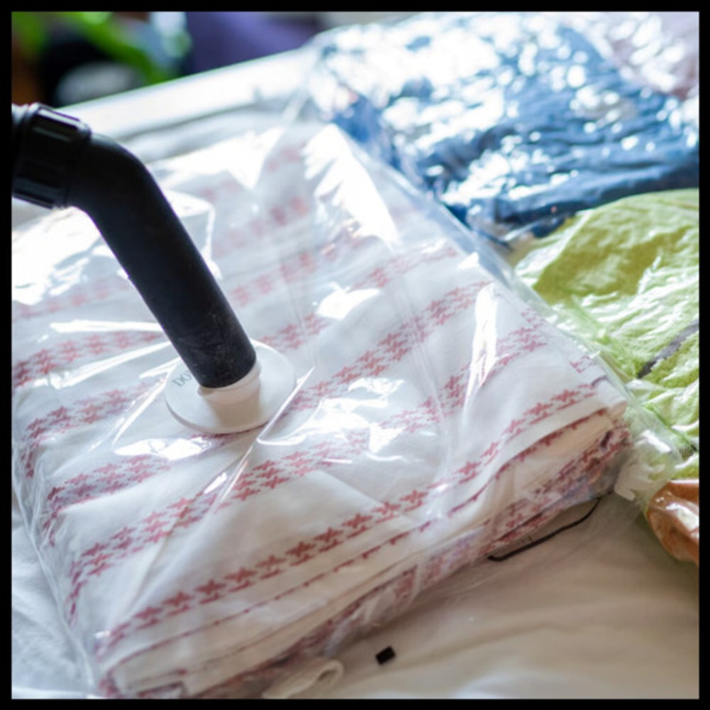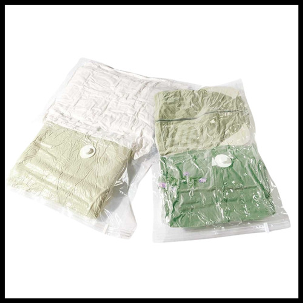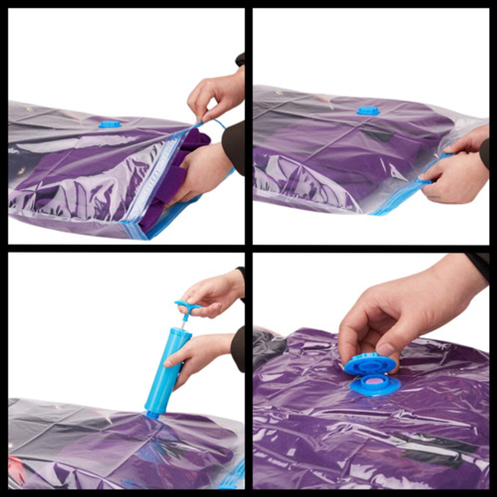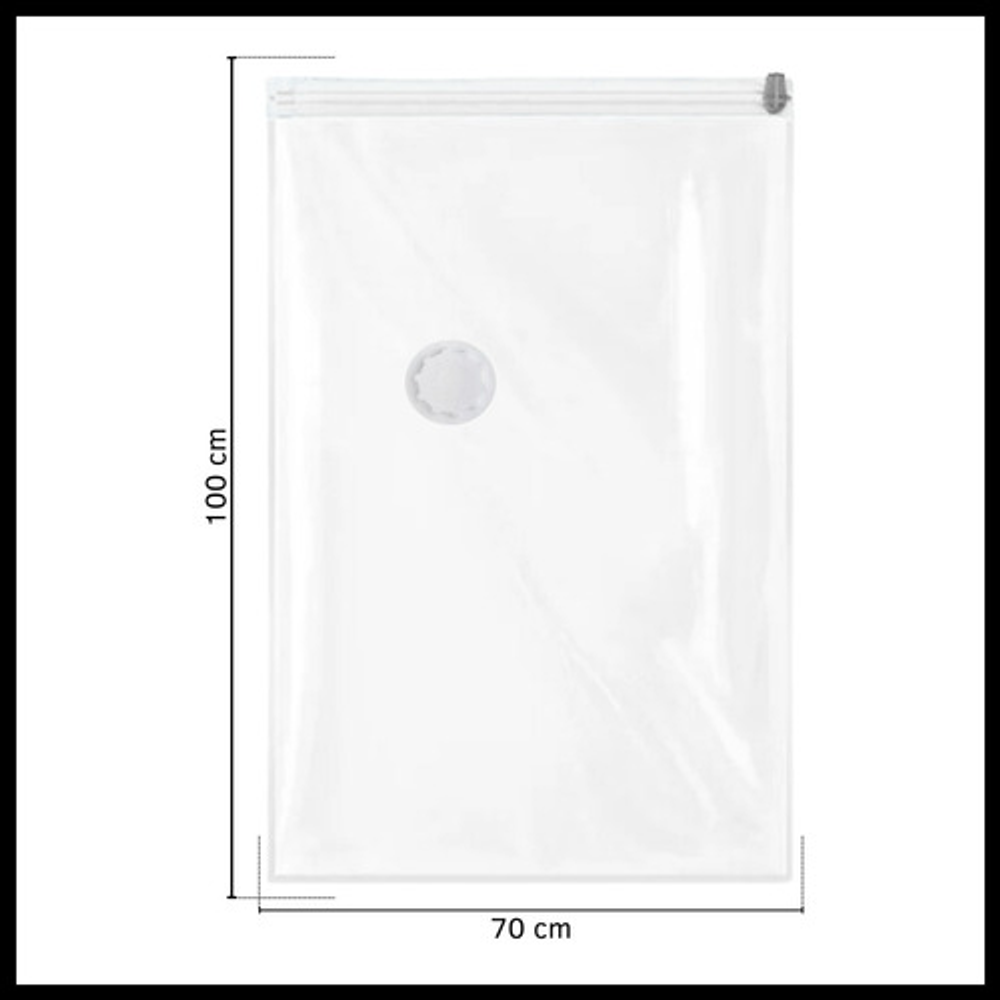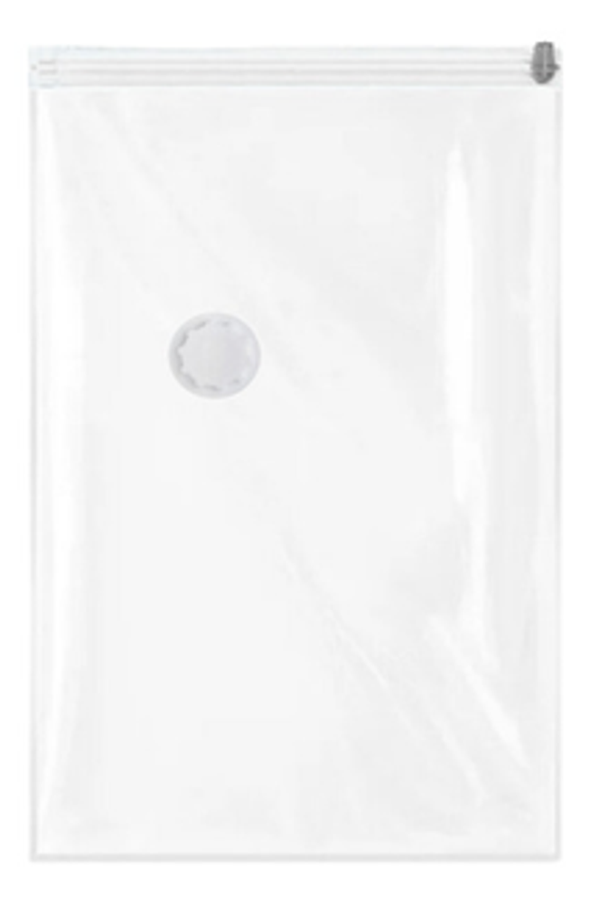 Características: • A prueba de agua, suciedad, polillas, moho. • Funciona con cualquier aspiradora. • Reduce el volumen en un 80%. • Válvula de succión universal. • Con pestaña selladora. • Material: plástico. • Reutilizable.